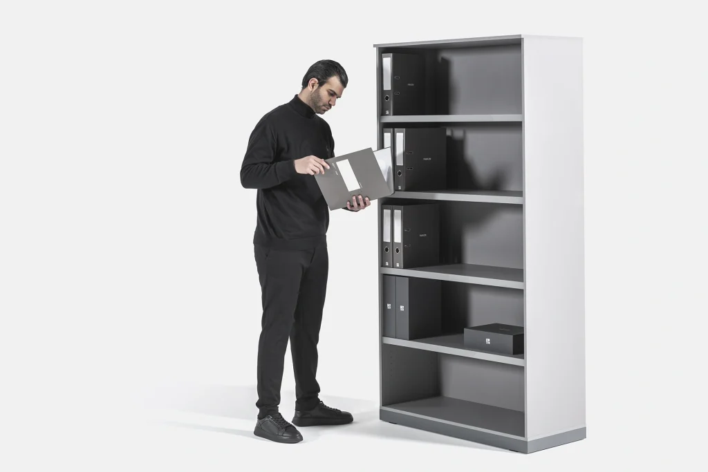 این قفسه اداری در ابعاد و ارتفاع‌های متنوع ارائه می‌شود و برای ایجاد فضایی منظم و کاربردی جهت نگهداری اسناد و لوازم اداری طراحی شده است. پاخور آلومینیومی بخشی از دیتیل استاندارد محصولات فرآذین است و دوام و استحکام قفسه را تضمین می‌کند و کیفیت بالای محصول را به نمایش می‌گذارد.