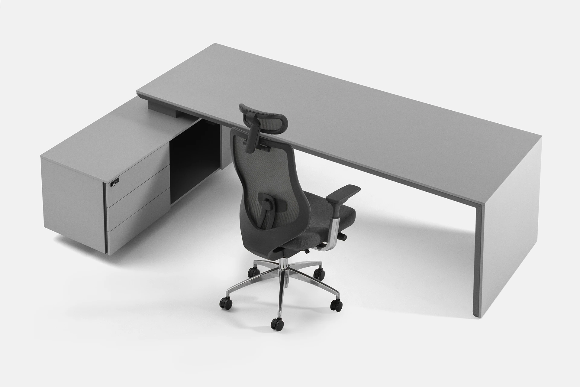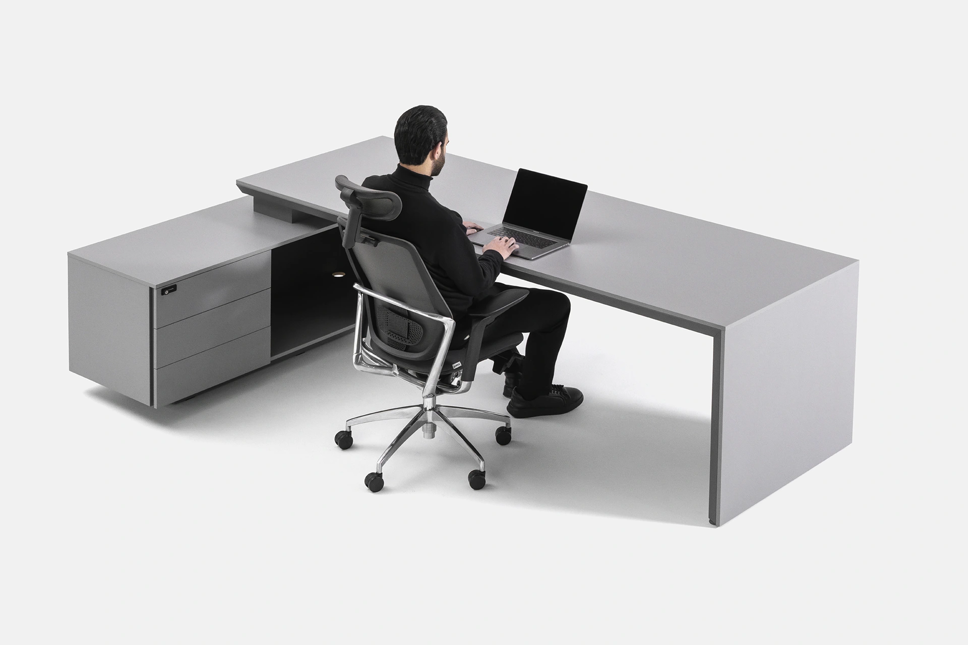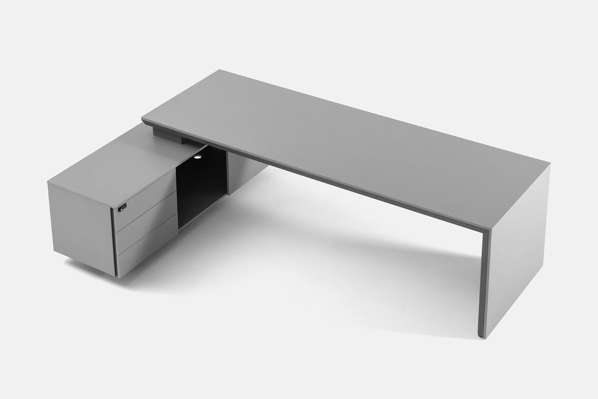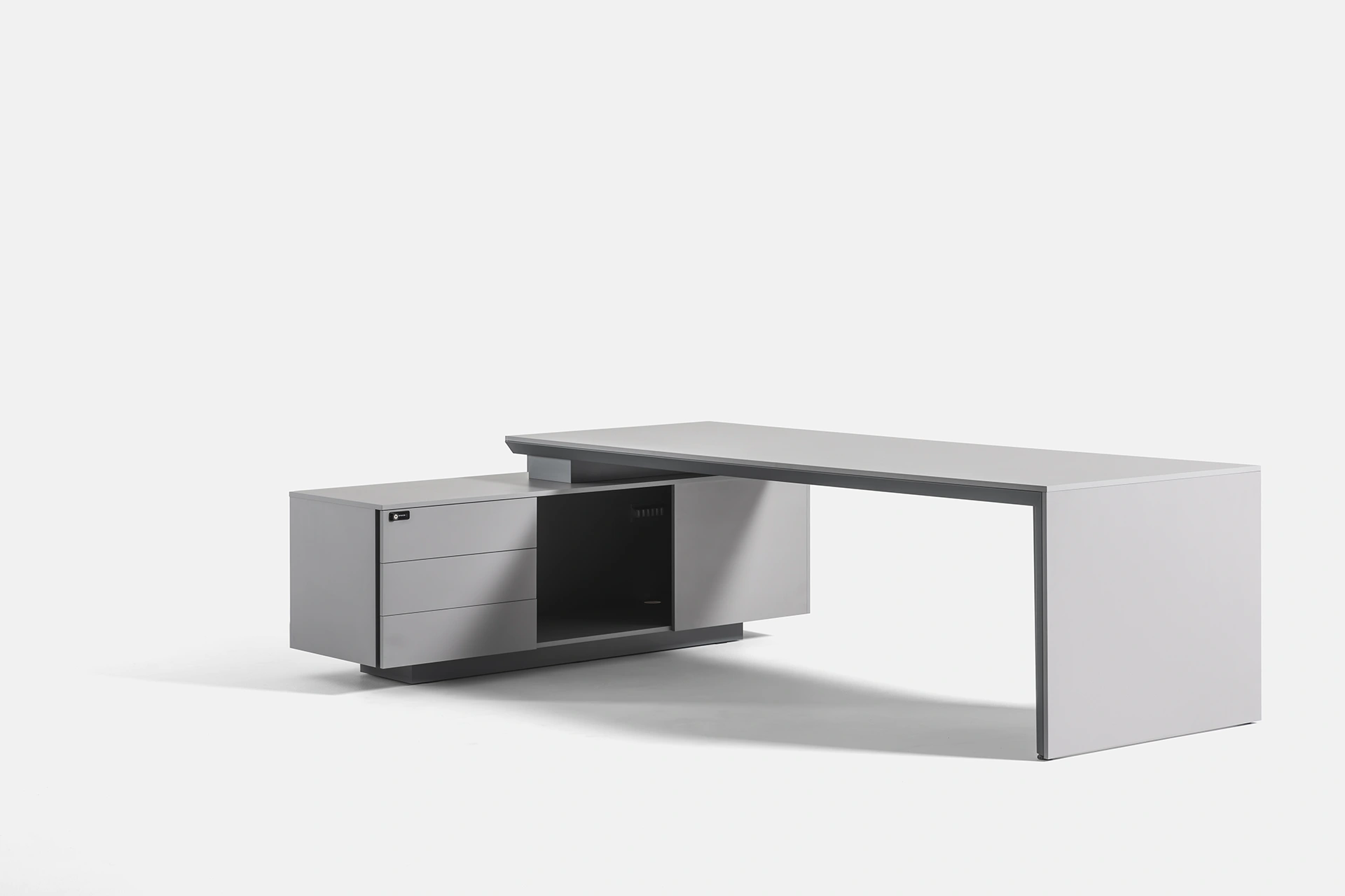 این میز مدیریتی تک کاربره با طراحی الشکل، ترکیبی از زیبایی، کارایی و استحکام را به محیط کاری شما میآورد. فرم L میز به واسطه پدستال متصل ایجاد شده است که دارای سه کشو و یک محفظه برای نگهداری وسایل و اسناد است و امکان سازماندهی کامل فضای کار را فراهم میکند.