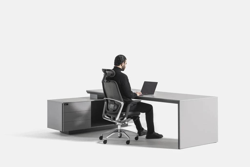طراحی مینیمال و حرفهای میز، هماهنگی کامل با دکوراسیون دفاتر مدیریتی ایجاد کرده و تجربهای راحت، سازمانیافته و لوکس برای کاربر فراهم میکند.