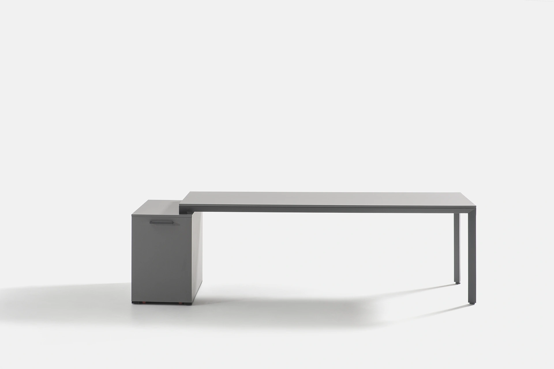 این میز اداری با طراحی مدرن، فضایی کارآمد و منظم برای محیطهای کاری فراهم میکند. اسکلت و پایههای تمامآلومینیومی، علاوه بر ظاهر سبک و شیک، دوام بالا و مقاومت طولانیمدت در برابر خوردگی، زنگزدگی و تغییر رنگ را تضمین میکنند.