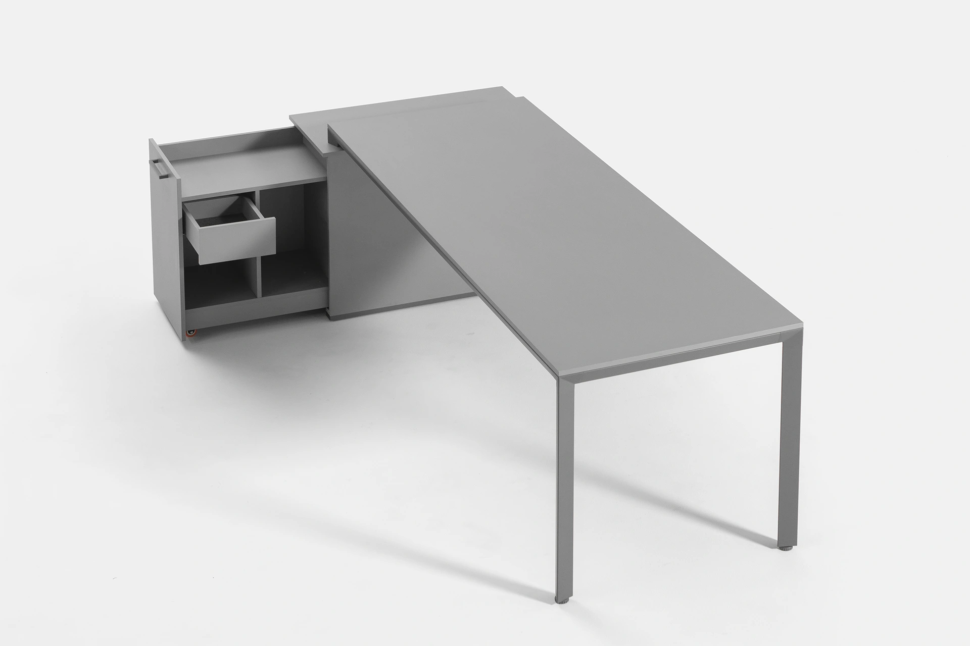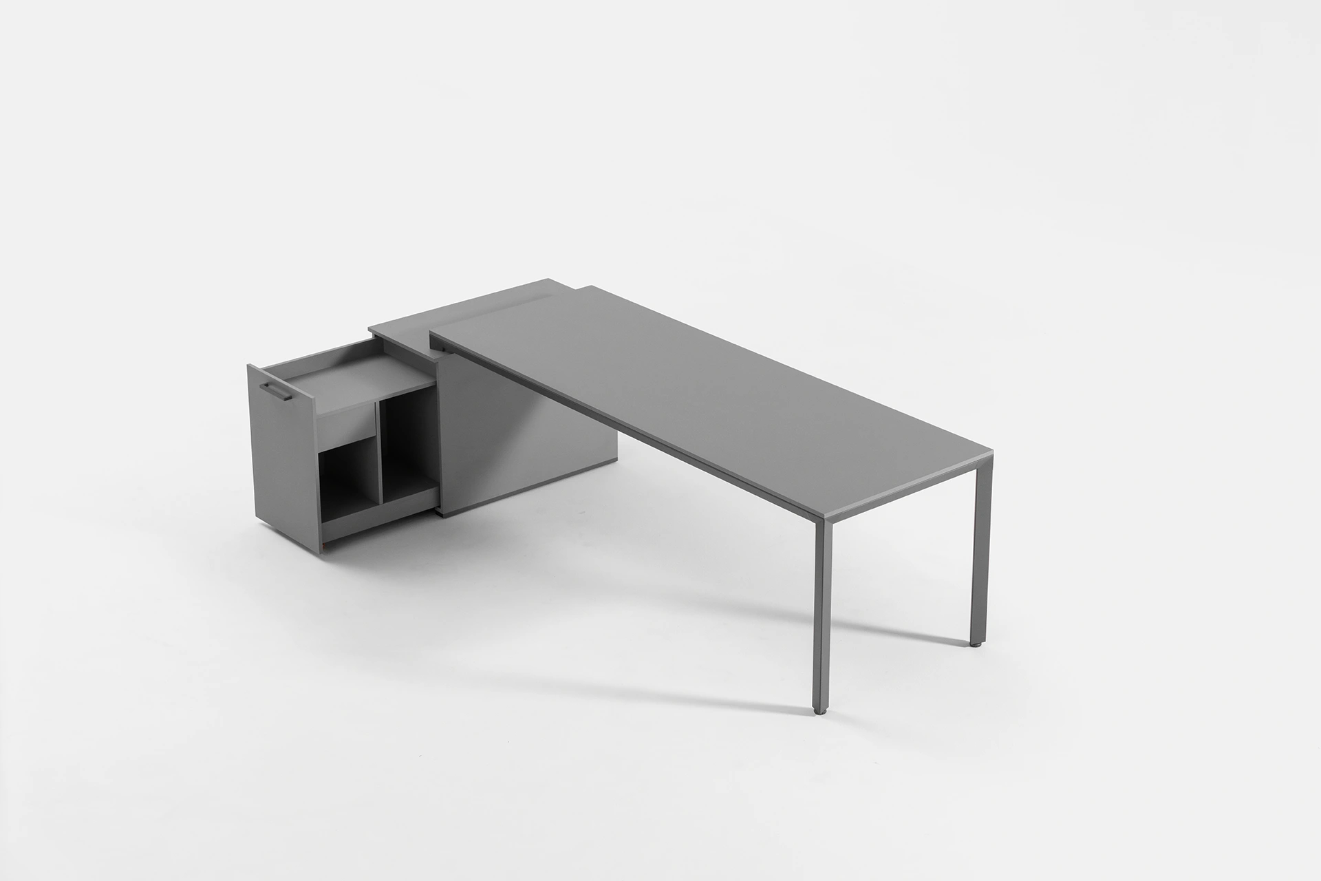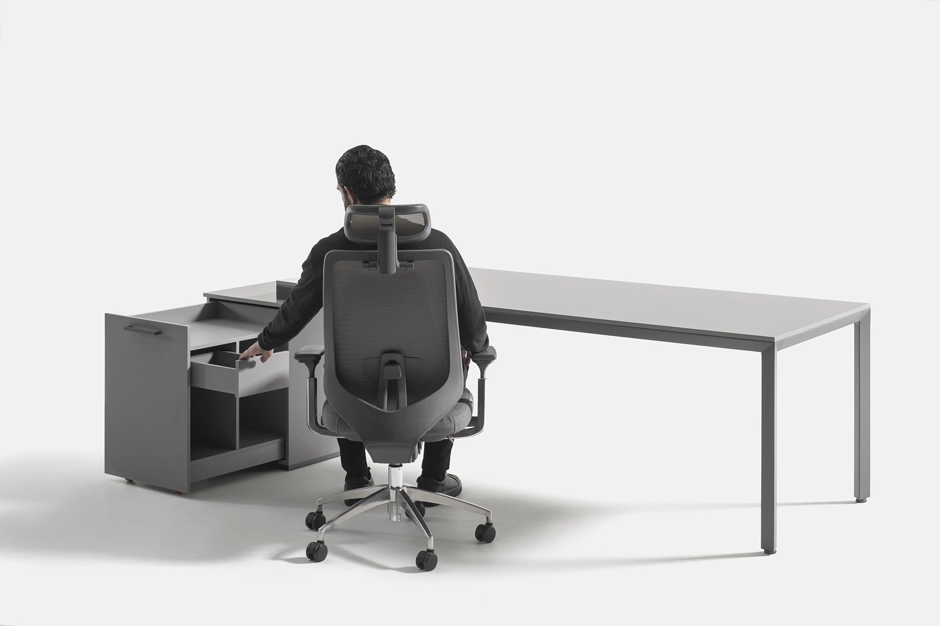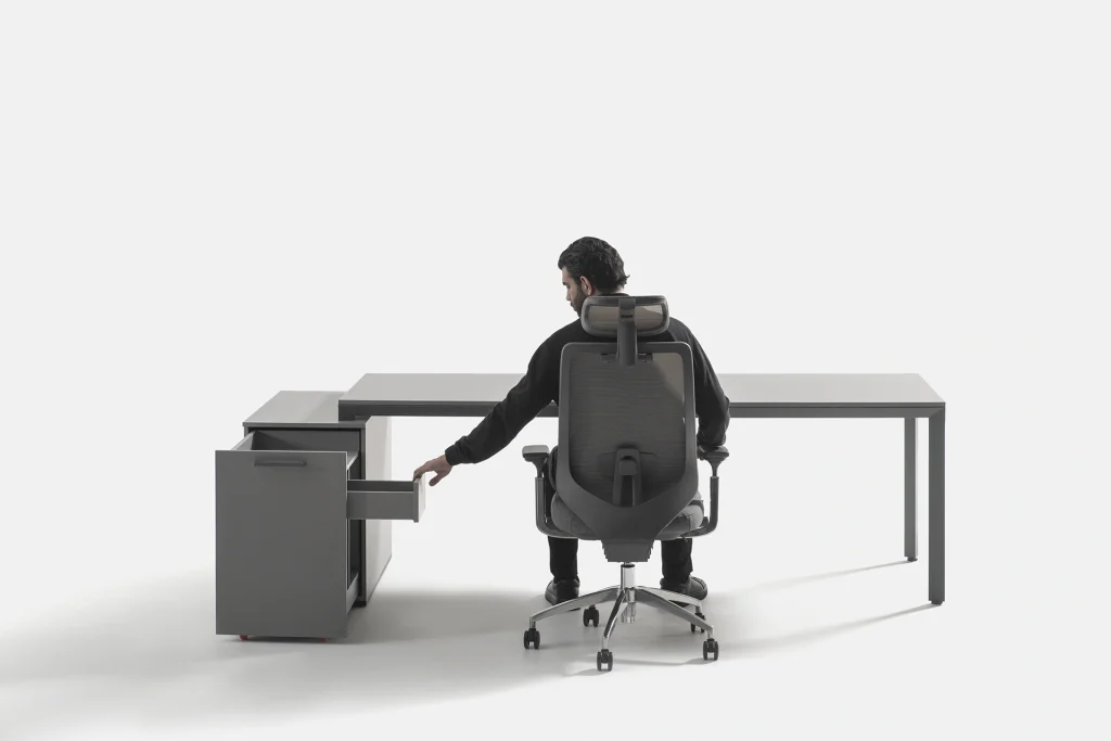 یونیت پدستال میز شامل یک کشوی کانتینری است که درون آن یک کشوی کوچک و قفسهبندی داخلی جذاب تعبیه شده است. این طراحی امکان استفاده بهینه از تمام فضای محفظه را فراهم میکند و کاربران میتوانند اسناد، لوازم و تجهیزات خود را بهصورت منظم و دسترسی آسان ذخیره نمایند. ساختار کانتینری اجازه میدهد تمام فضای داخلی یونیت بدون محدودیت مورد استفاده قرار گیرد.