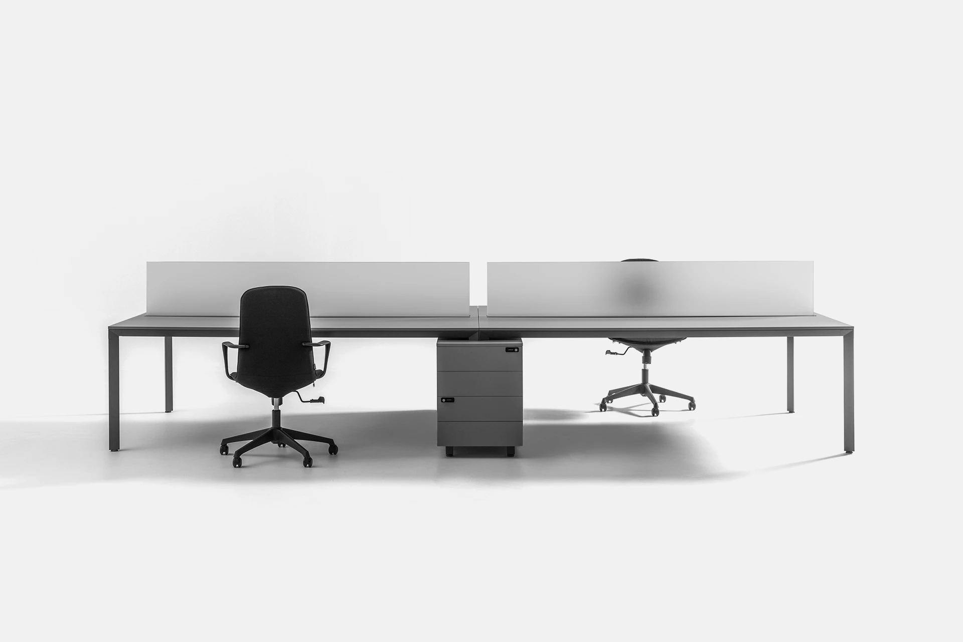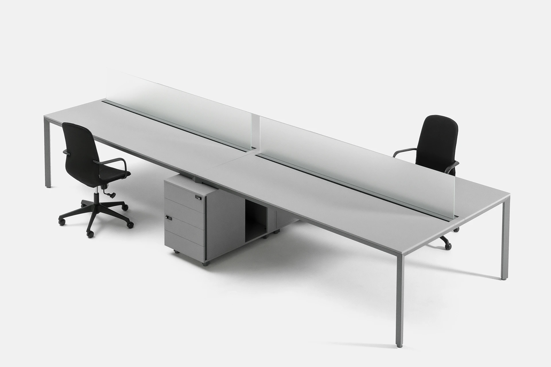 هر دو کاربر به یک پدستال دراور ۴ کشو دسترسی دارند که به هر کاربر دو کشو اختصاص یافته است. این طراحی باعث استفاده بهینه از فضای ذخیرهسازی و کاهش هزینههای ورکاستیشن میشود و انتخابی ایدهآل برای دفاتر با بودجه اقتصادی (اکونومی) به شمار میآید. دیوایدرهای شیشهای نیز علاوه بر جداسازی فضای کاری، امکان استفاده بهعنوان برد نوشتاری و نصب اکسسوریهای آهنربایی را فراهم میکنند.