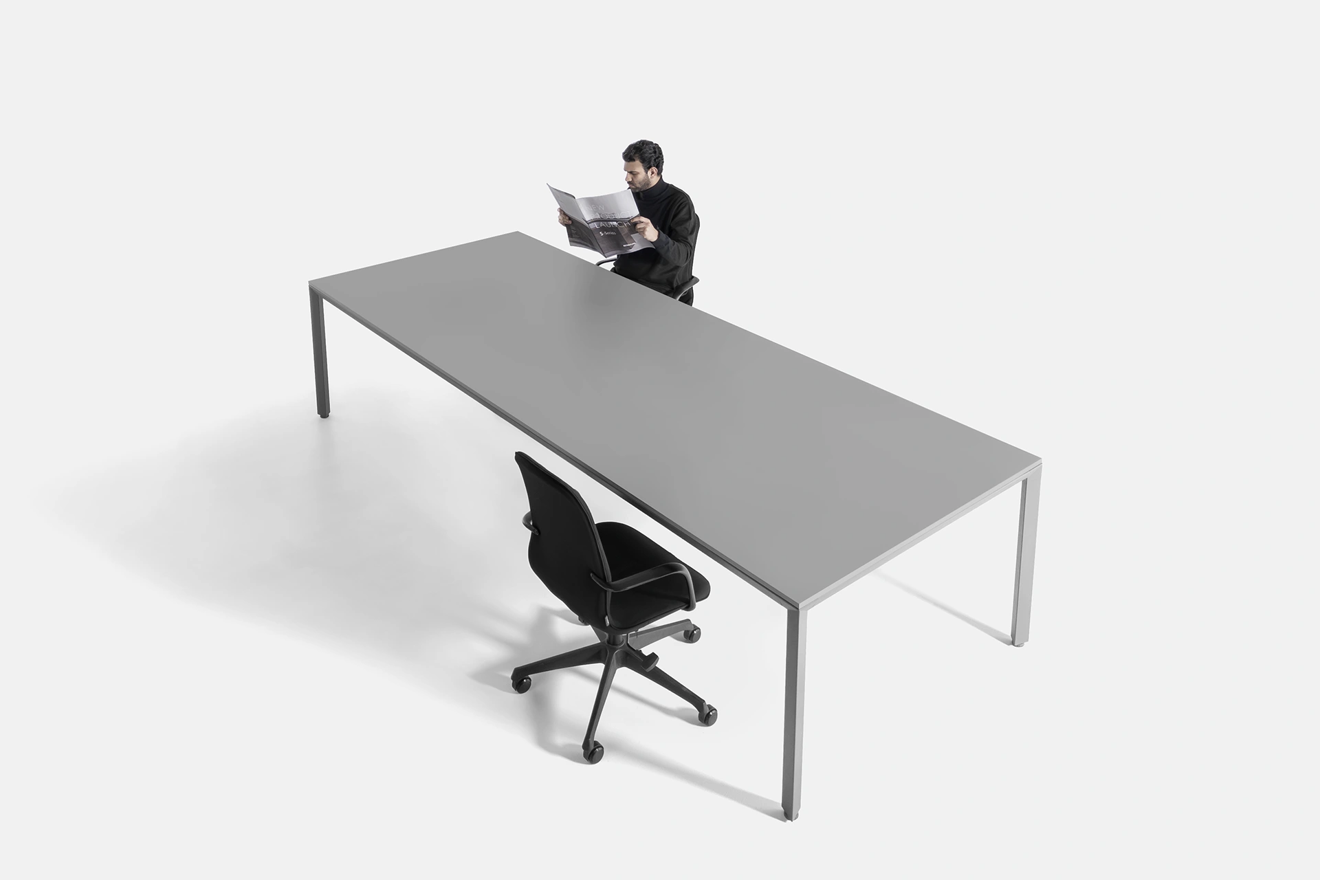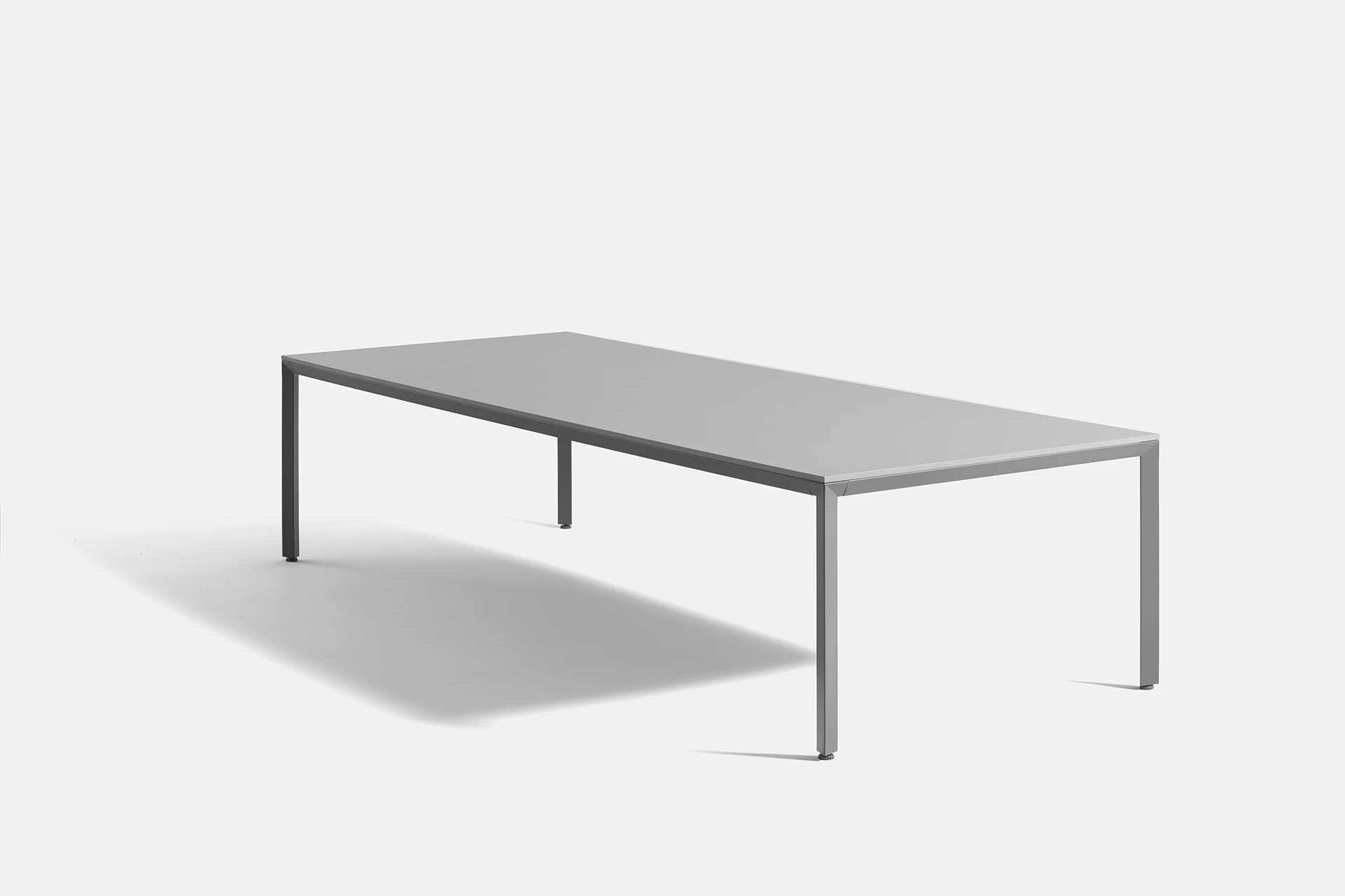 This conference table, with its modern and elongated design, creates a sleek, organized, and efficient space for meetings. The full-aluminum structure ensures high durability and stability, while offering a minimalist and professional appearance that enhances the workplace environment.