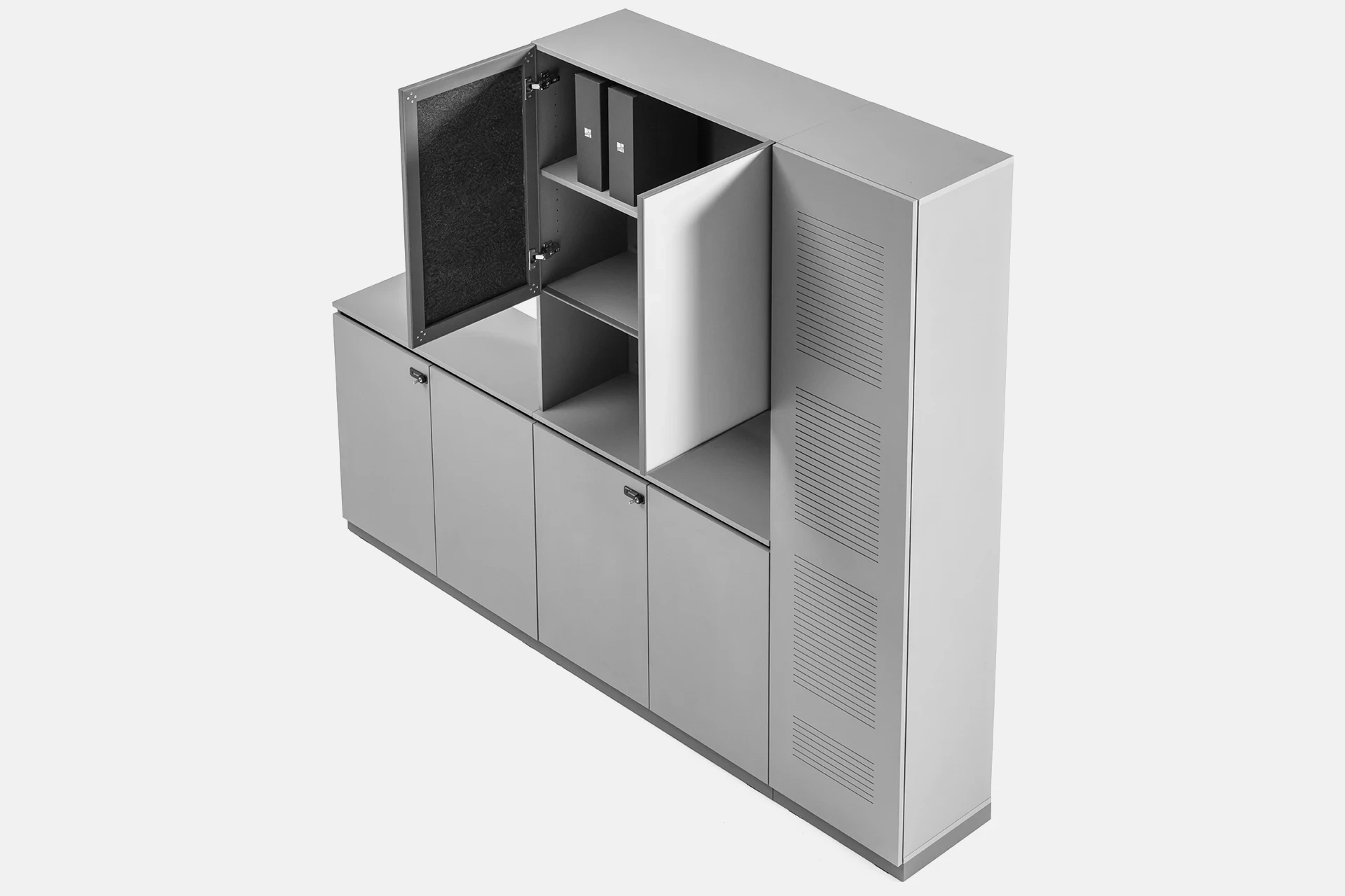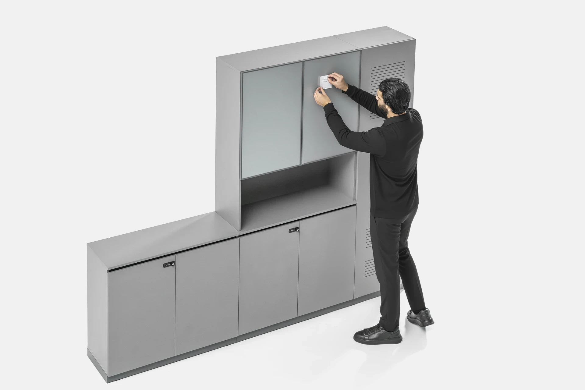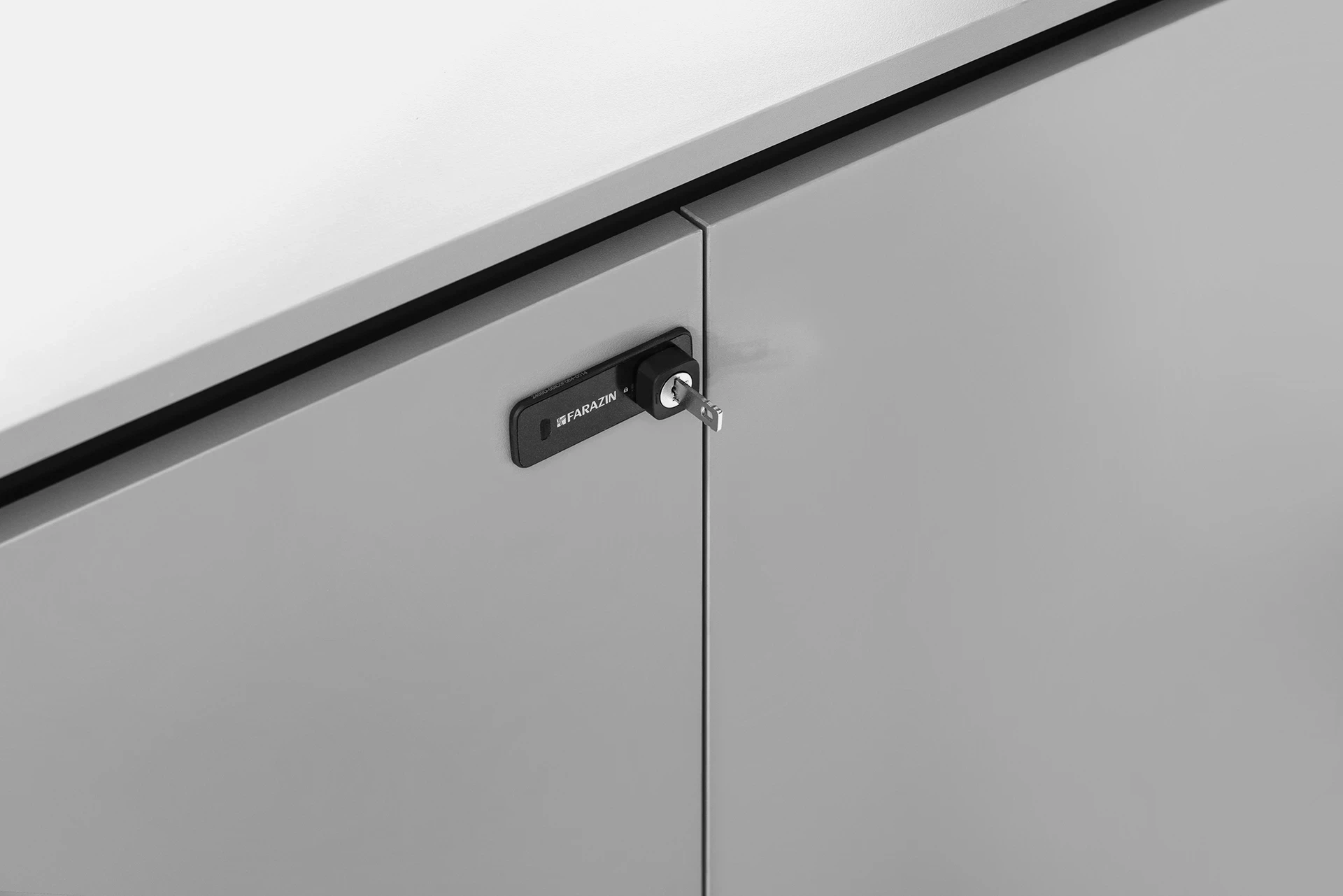 The aluminum base, a standard detail of Farazin products, ensures the overall durability and strength of the entire unit. The combination of professional design, high-quality materials, and intelligent functionality makes this cabinet an ideal choice for executive offices and luxurious workspaces.