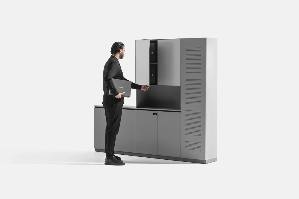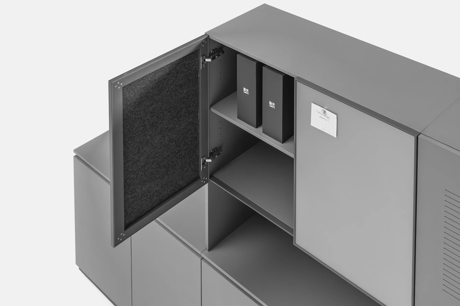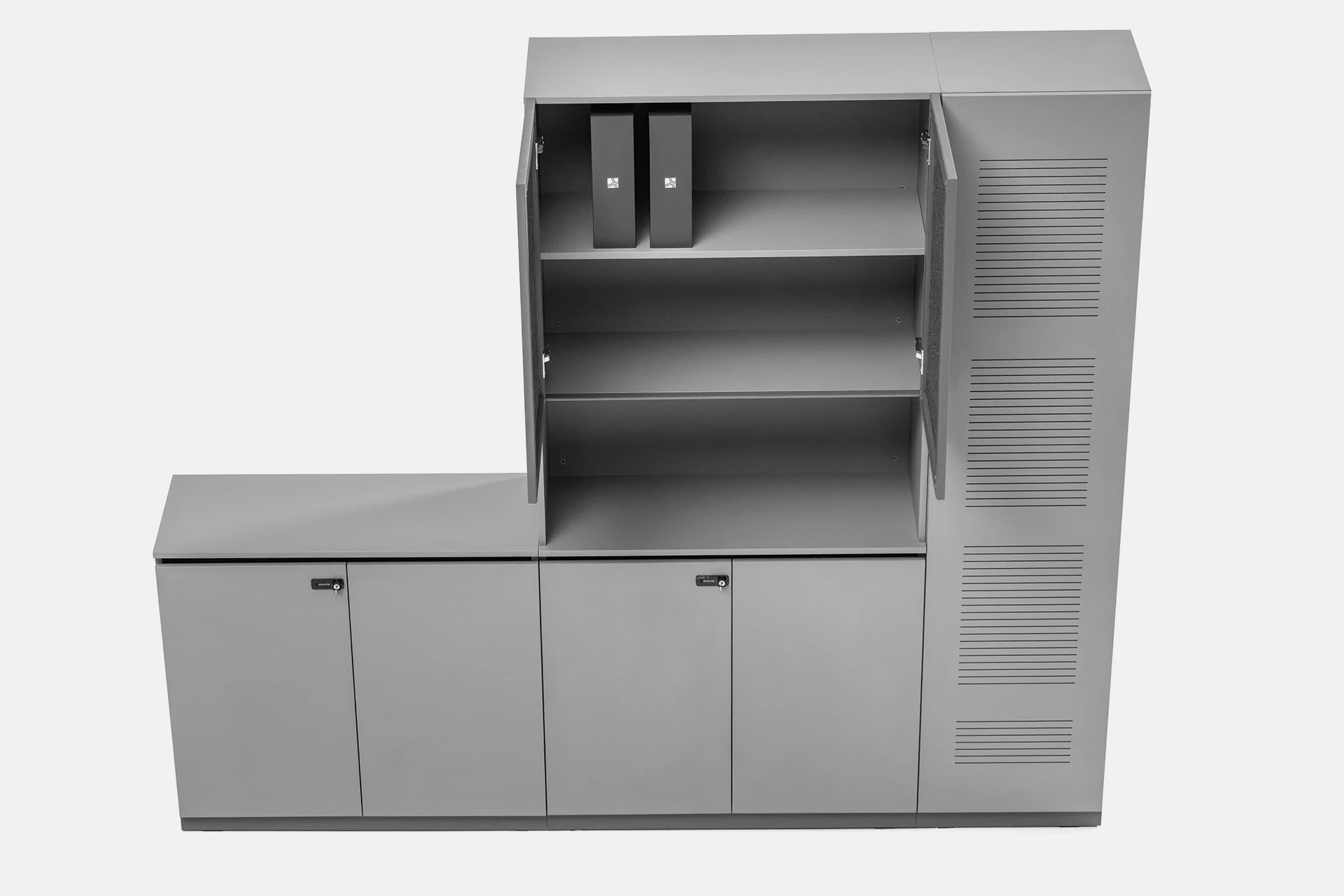 The aluminum base, a standard detail of Farazin products, ensures the overall durability and strength of the entire unit. The combination of professional design, high-quality materials, and intelligent functionality makes this cabinet an ideal choice for executive offices and luxurious workspaces.