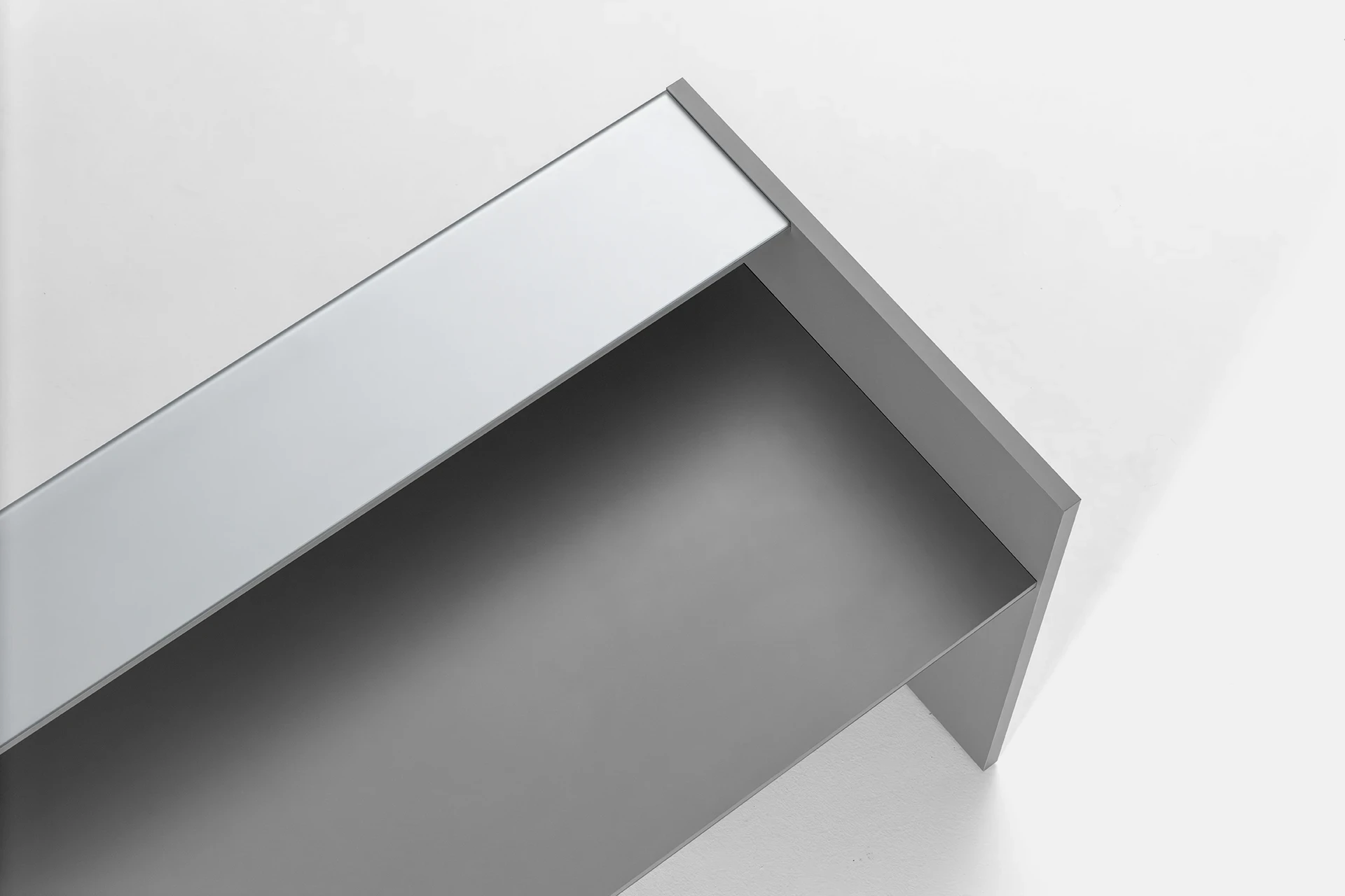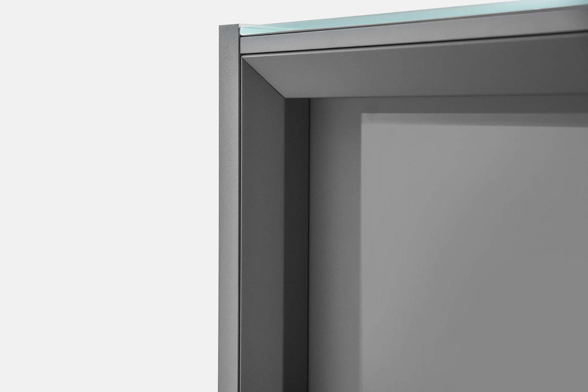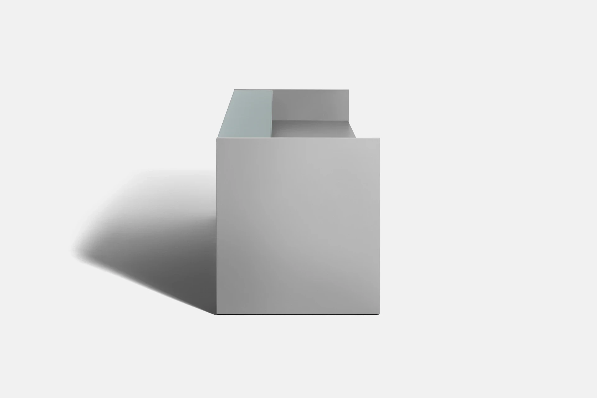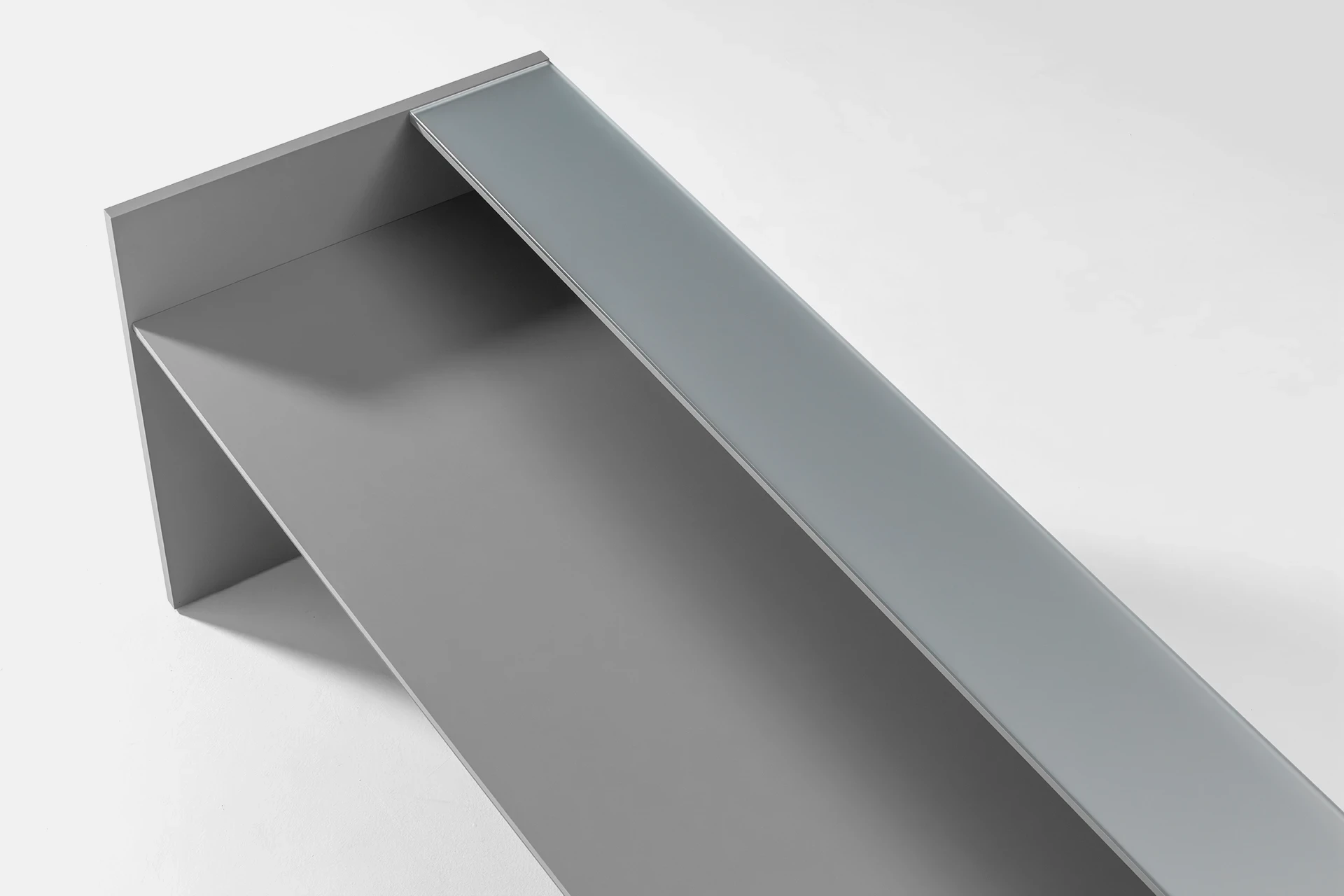 The desk surface can be made from tempered glass with a thickness of 10mm. The edges of the glass are diamond-shaped and polished, with a powder-coated color and a protective film underneath the glass. The glass is available in two versions: clear and polished or satin texture, with a variety of color options available for the client to choose from.