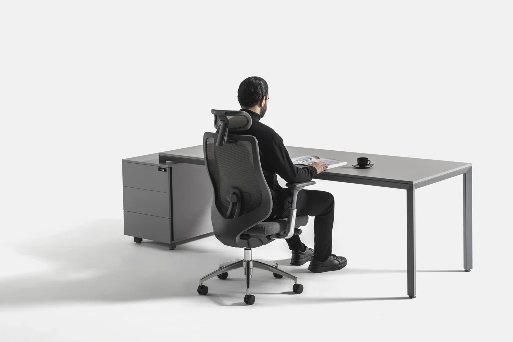 This office desk, with its minimalist design and style, brings a combination of elegance, simplicity, and order to any modern workspace. The fully aluminum frame and legs not only provide a lightweight and sleek appearance but also ensure high resistance to corrosion, rust, and discoloration. The precise, angular frame gives the desk a modern and technical look, perfectly aligning with today’s office décor.