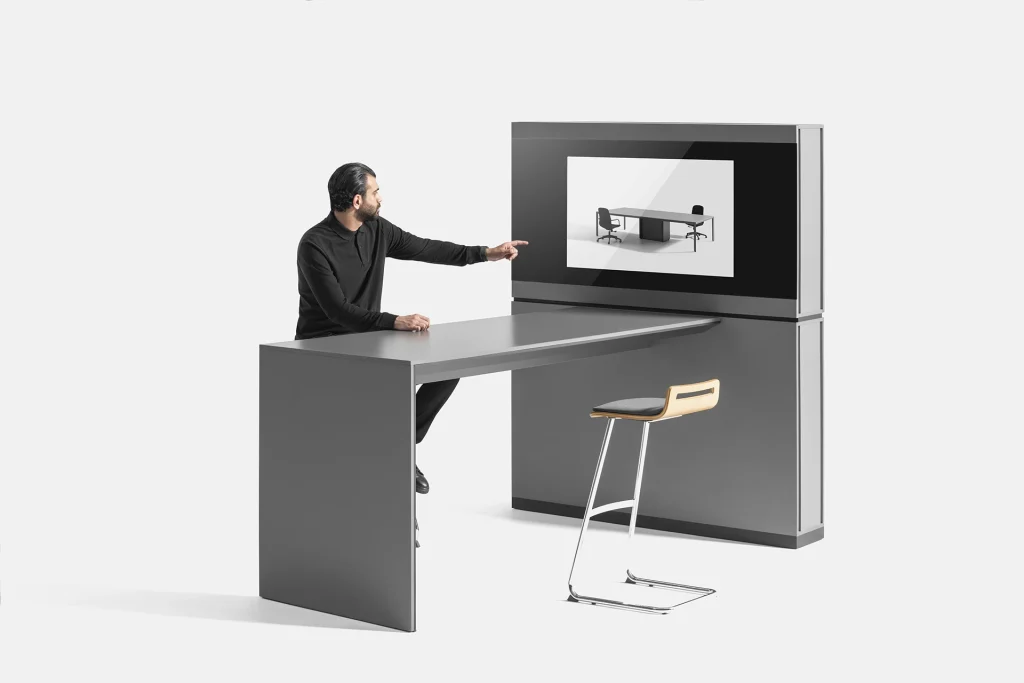 This combination is ideal for use in lobbies, meeting rooms, open workspaces, and other organizational environments. It creates a practical, organized, and professional experience for users, while simultaneously adding a modern aesthetic that harmonizes with the workspace.