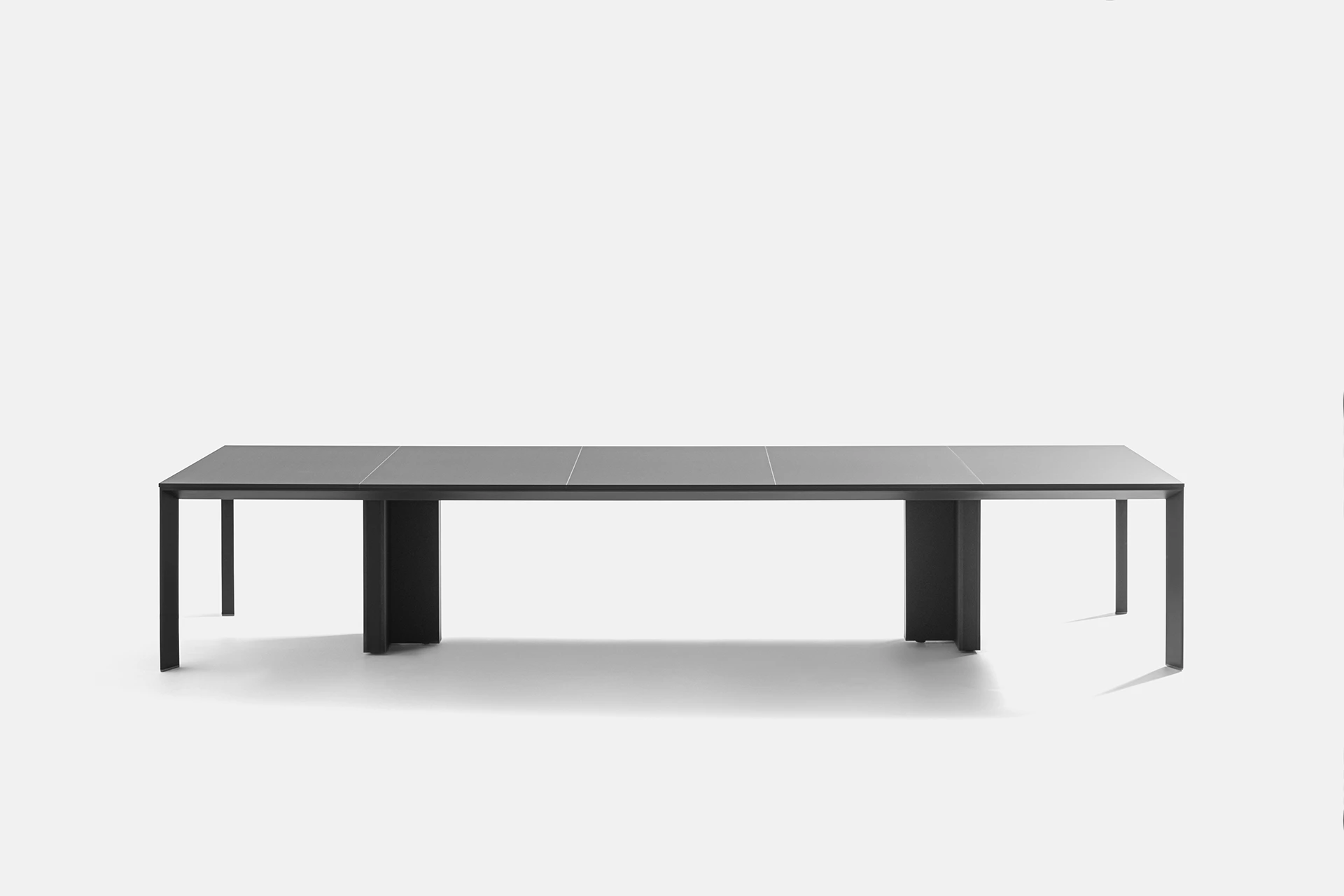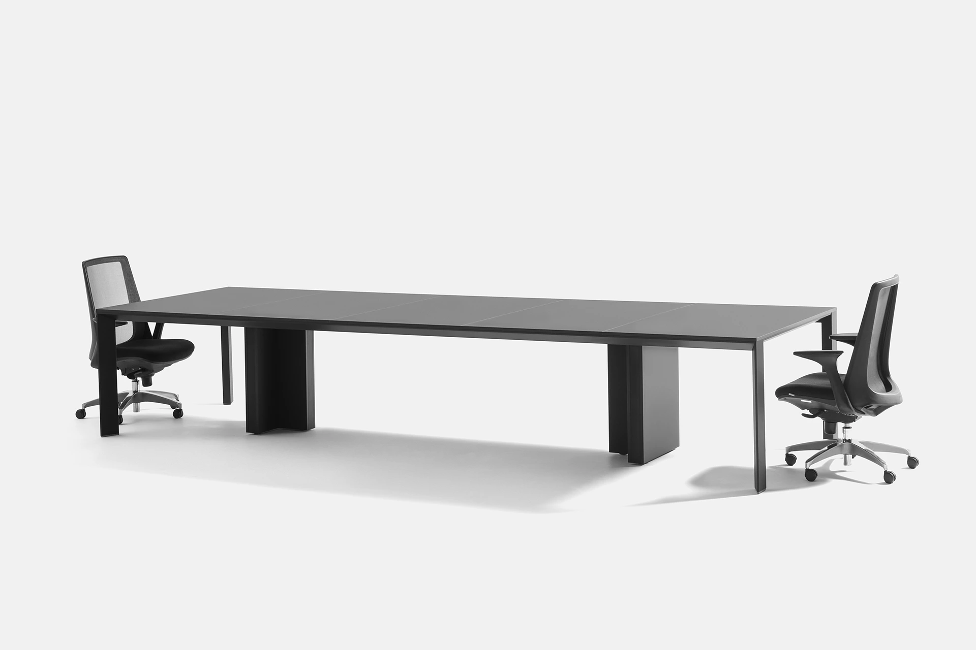 The combination of the durable aluminum structure, angular design, and modern features makes this table an ideal choice for modern offices and conference rooms.