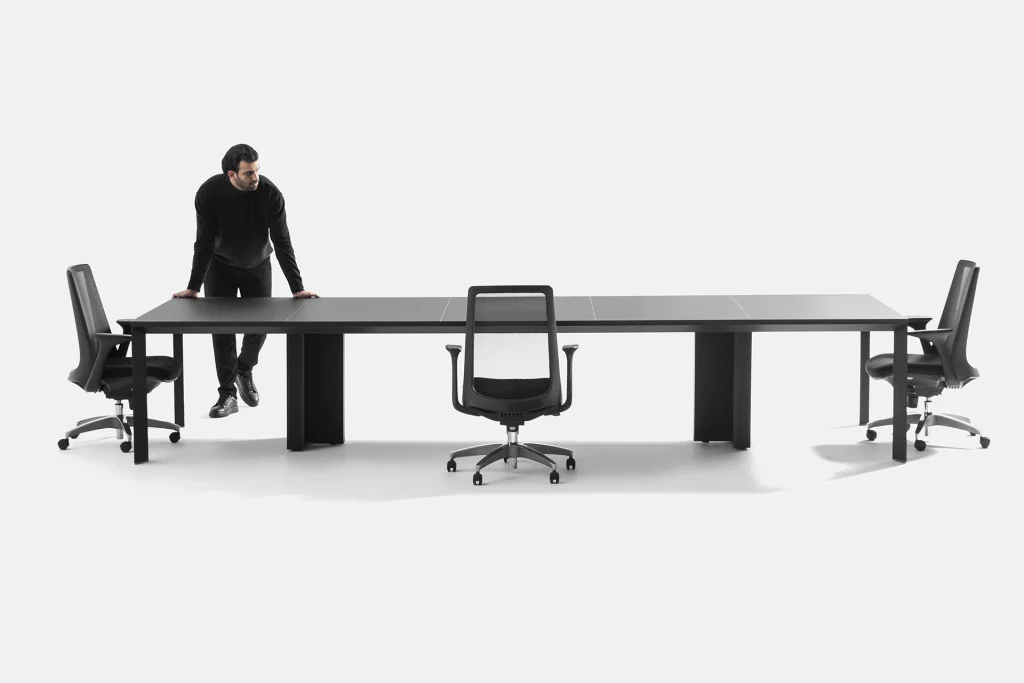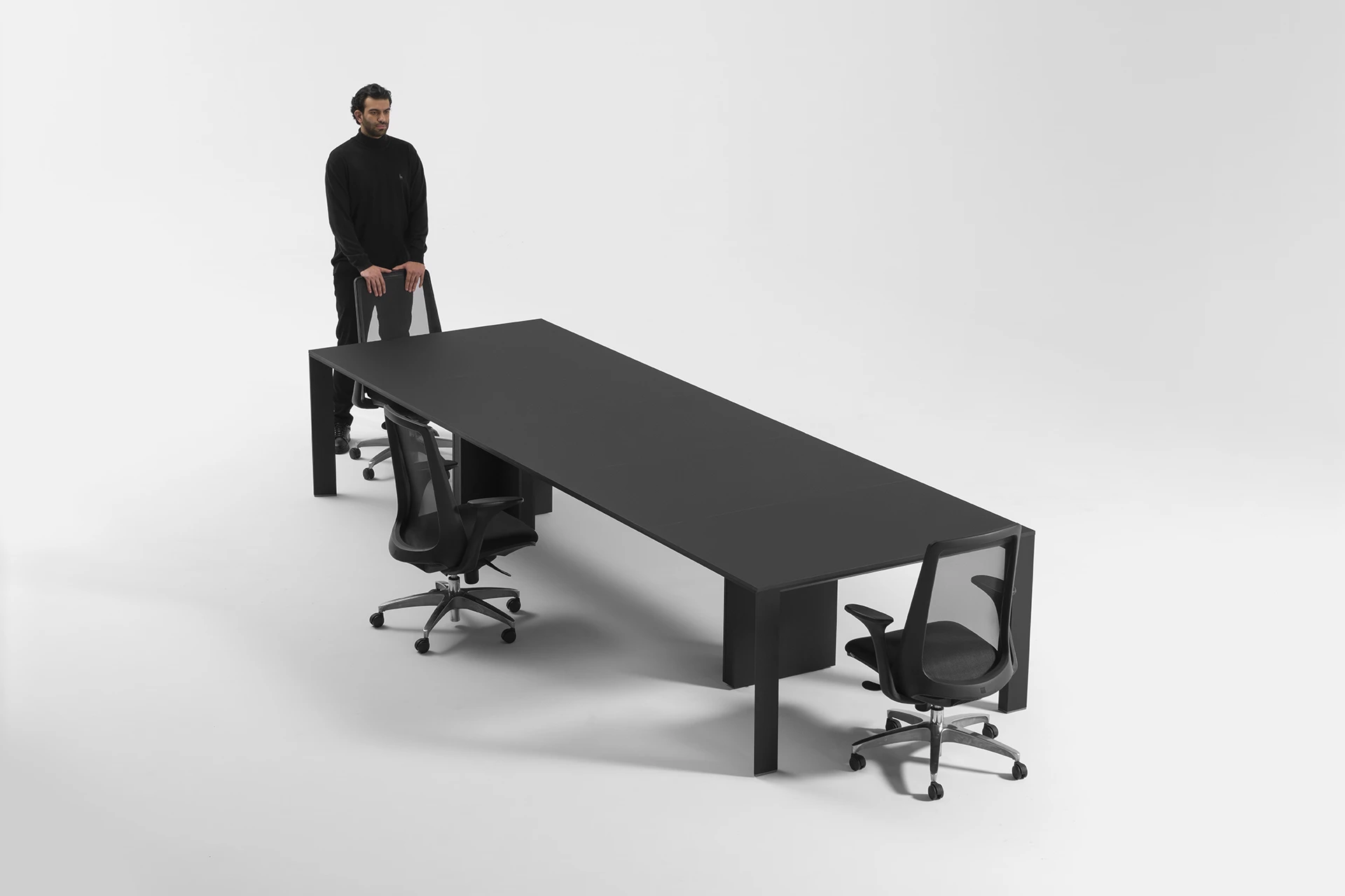 The S Series Conference Table by Farazin features a fully aluminum structure with a modern and angular design, giving a unique and professional appearance to your meeting spaces. The integrated central box discreetly routes cables and equipment from the floor to the surface of the table, enhancing the order and functionality of the conference environment.