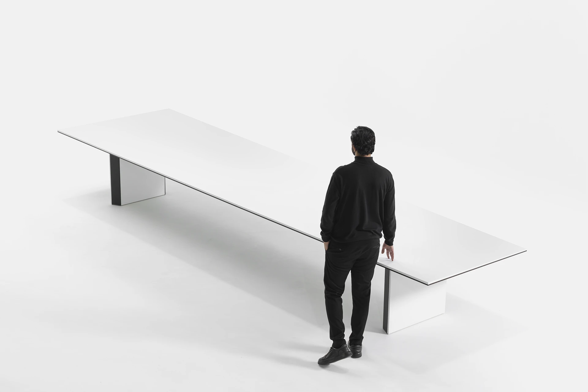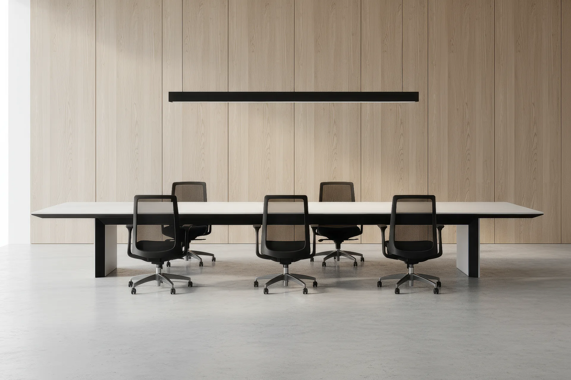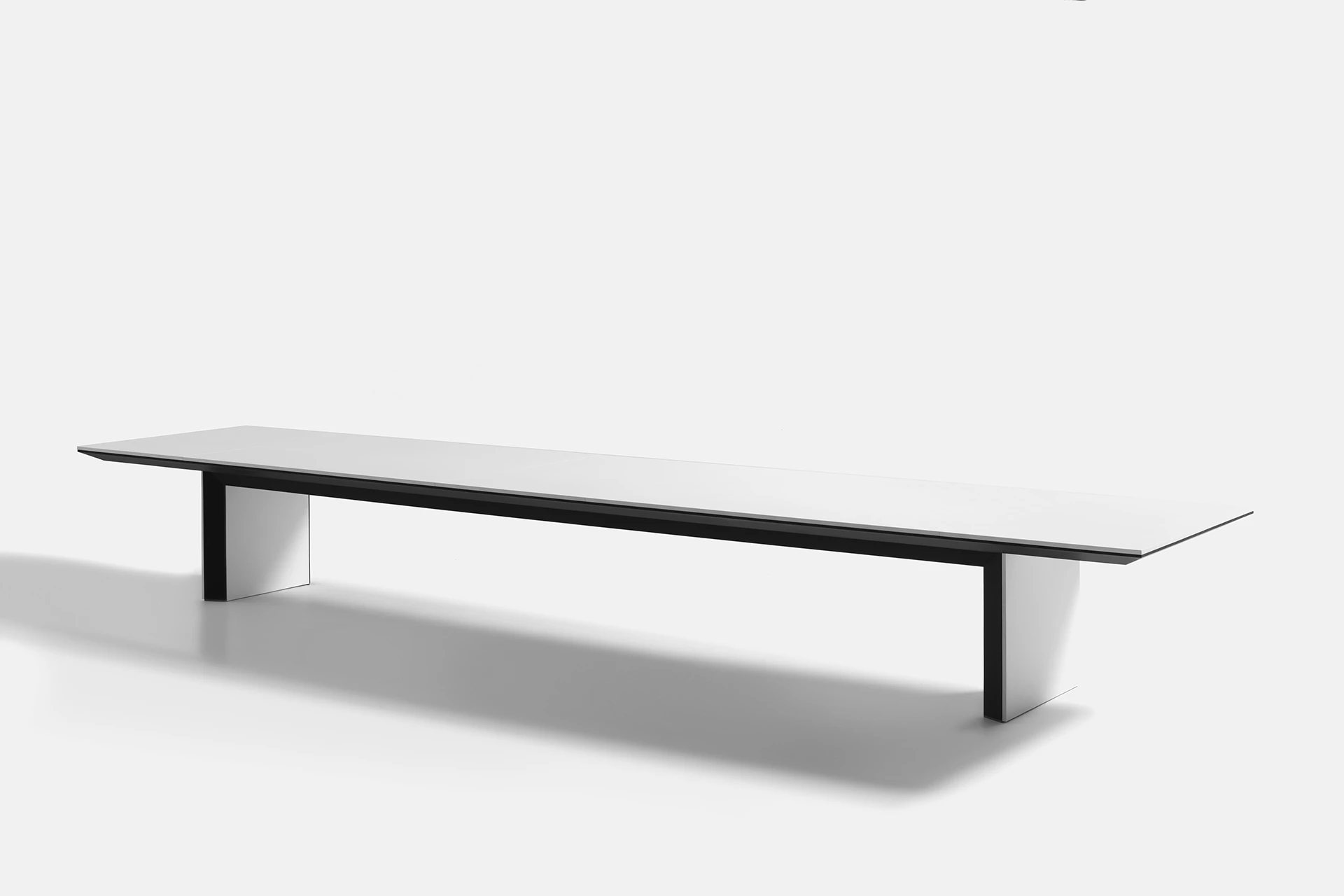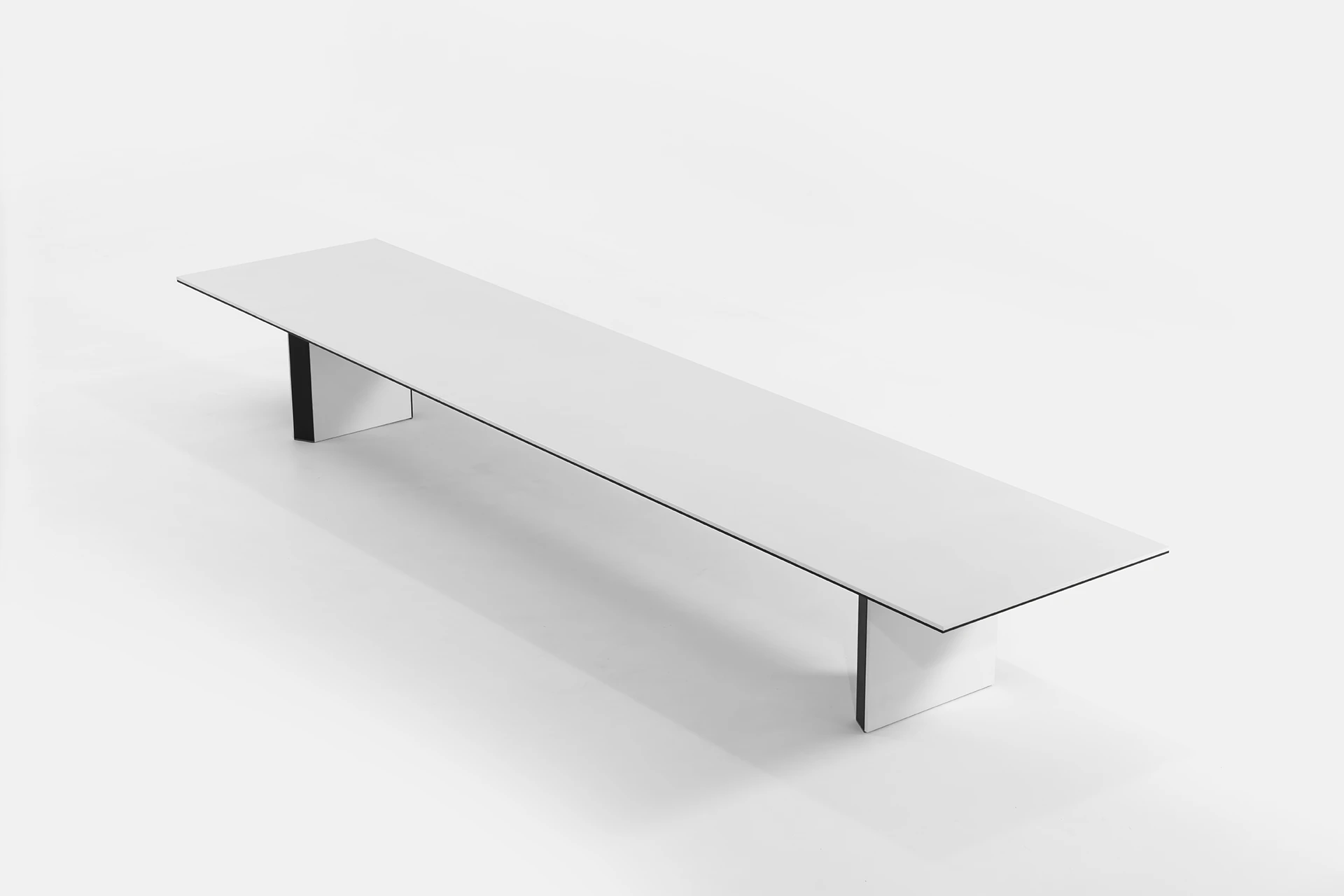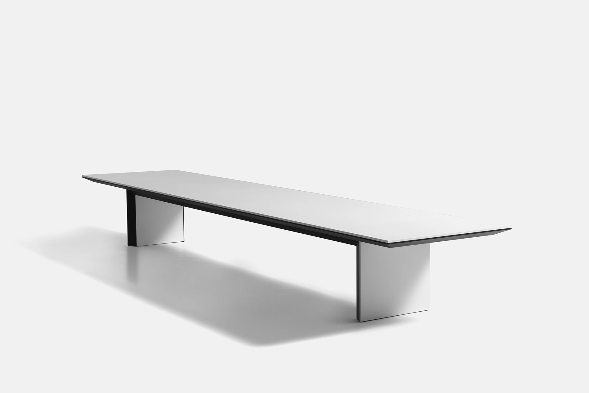 The S Conference Table by Farazin is a premium product featuring a 6-meter length and two distinctive supports. It offers a perfect combination of precise engineering, high durability, and a unique design. The structure is made of fully-machined aluminum components, ensuring exceptional strength, resistance, and long-term stability.