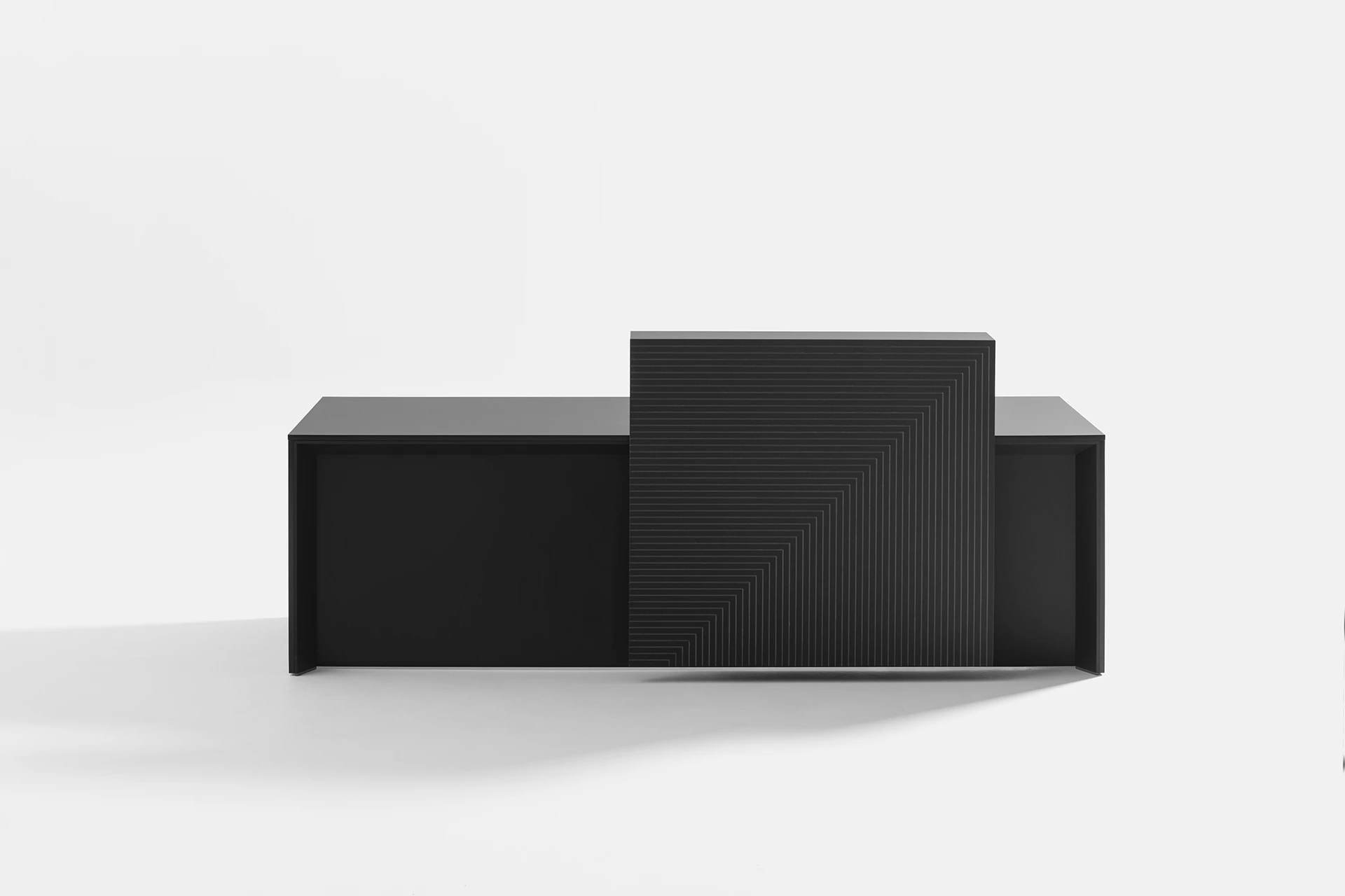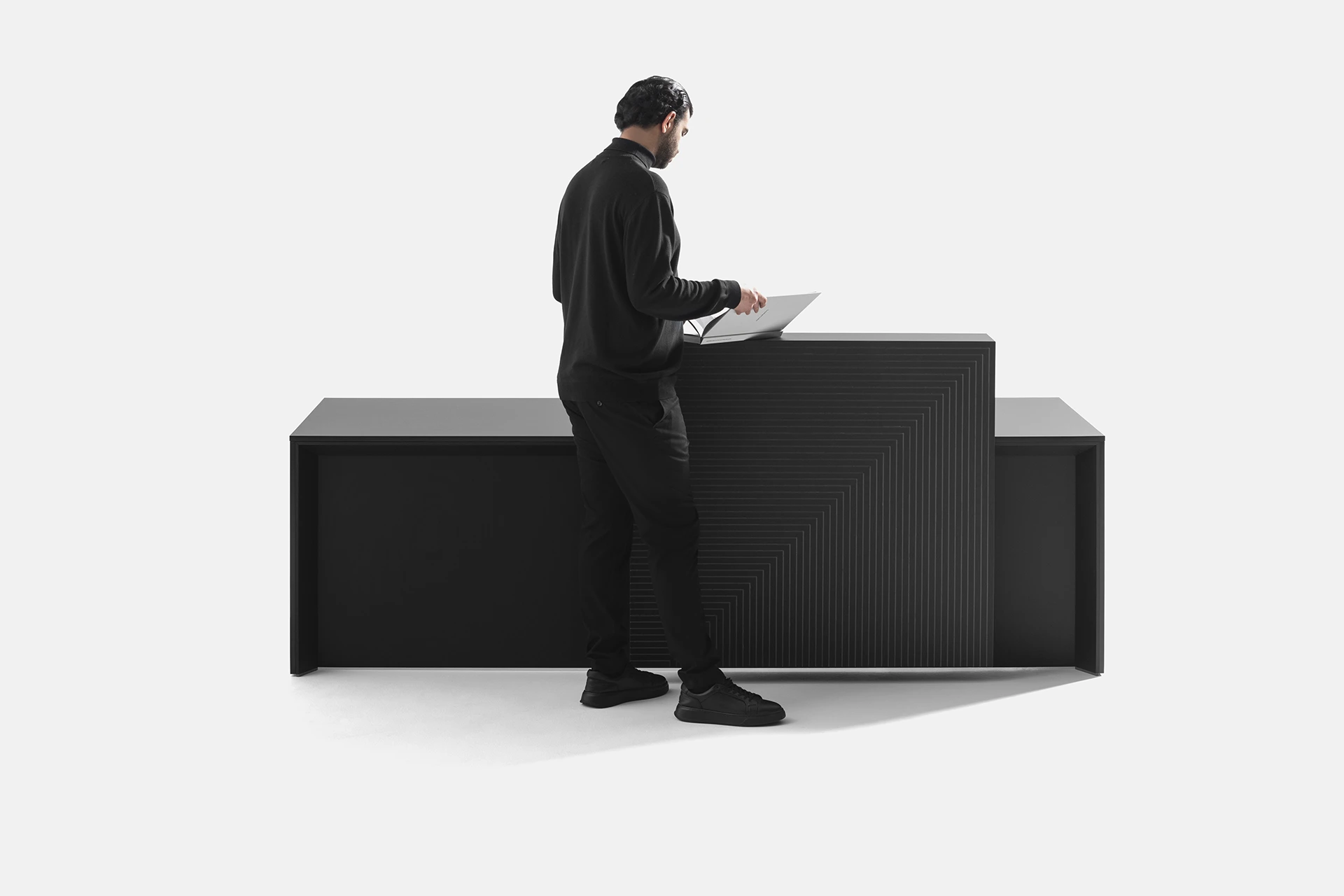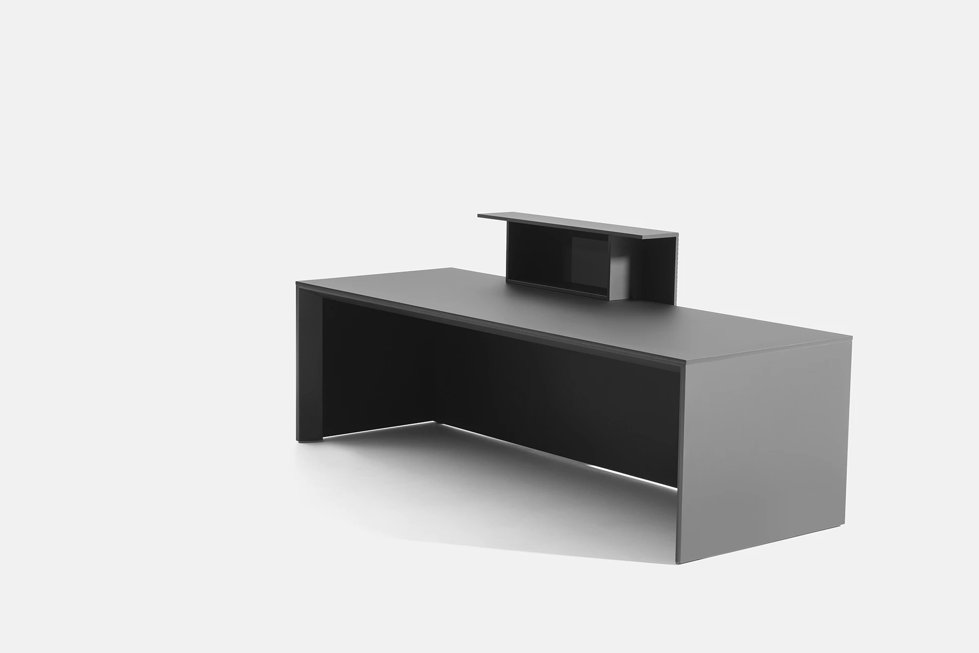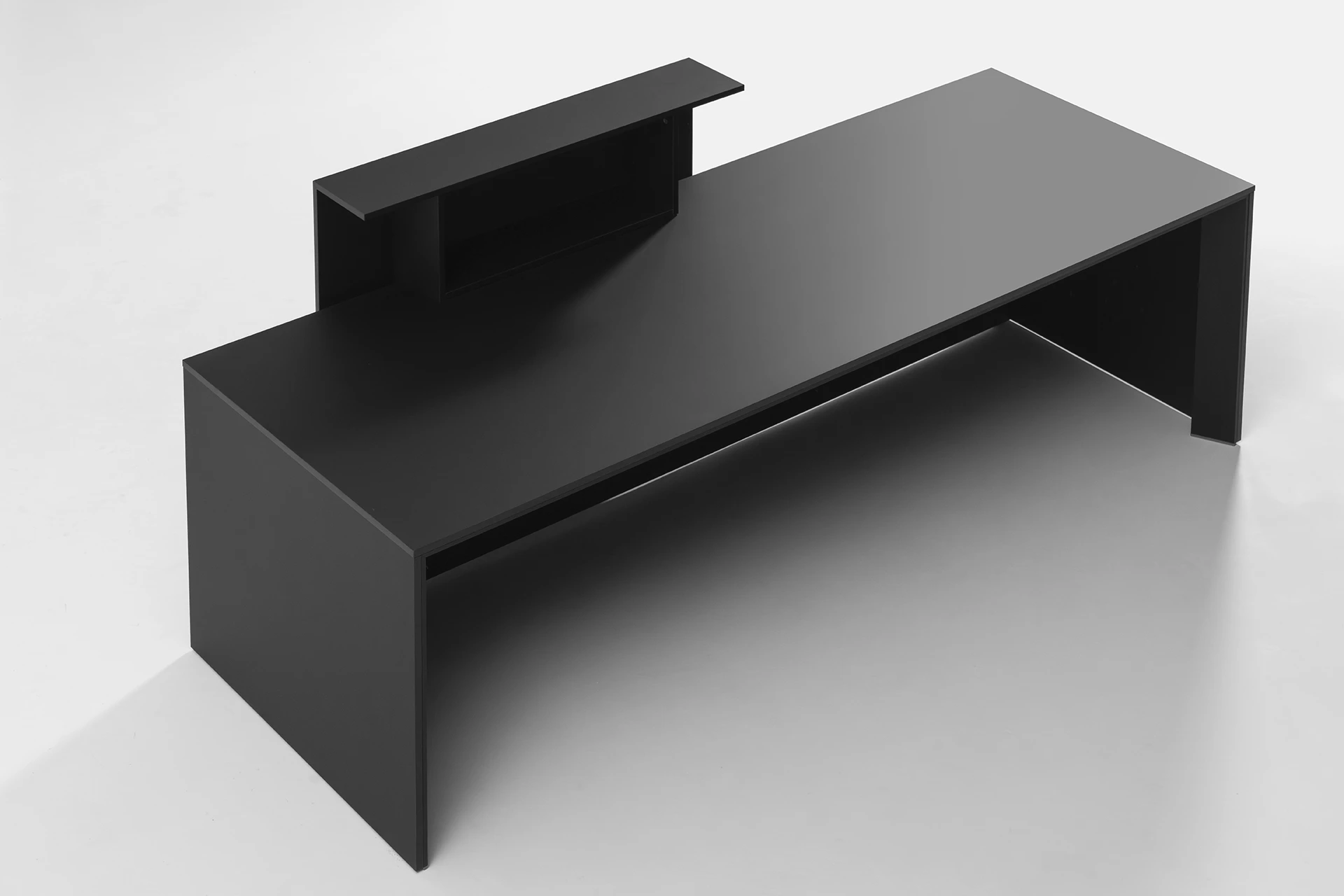 This counter features a specially designed countertop that covers part of the desk, making the workspace appear tidy and organized for clients. In addition to creating a stylish and professional look, the countertop allows for the separation of user workspace from client areas, offering a well-organized and efficient experience.