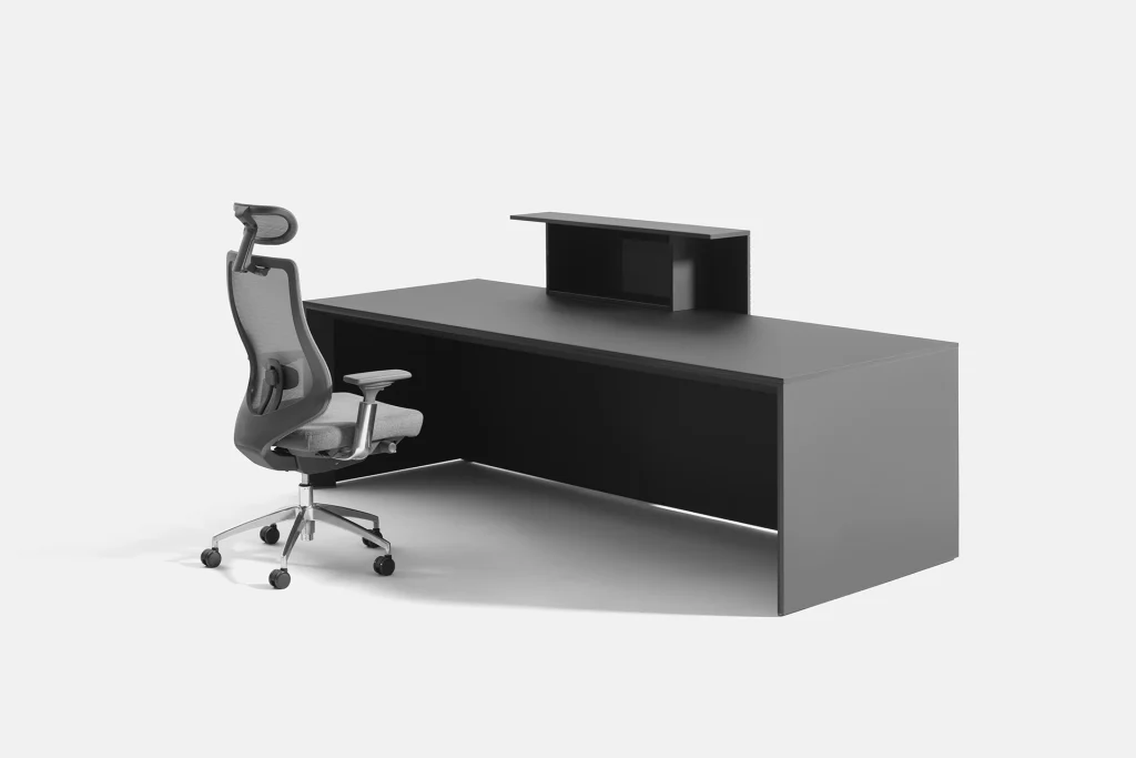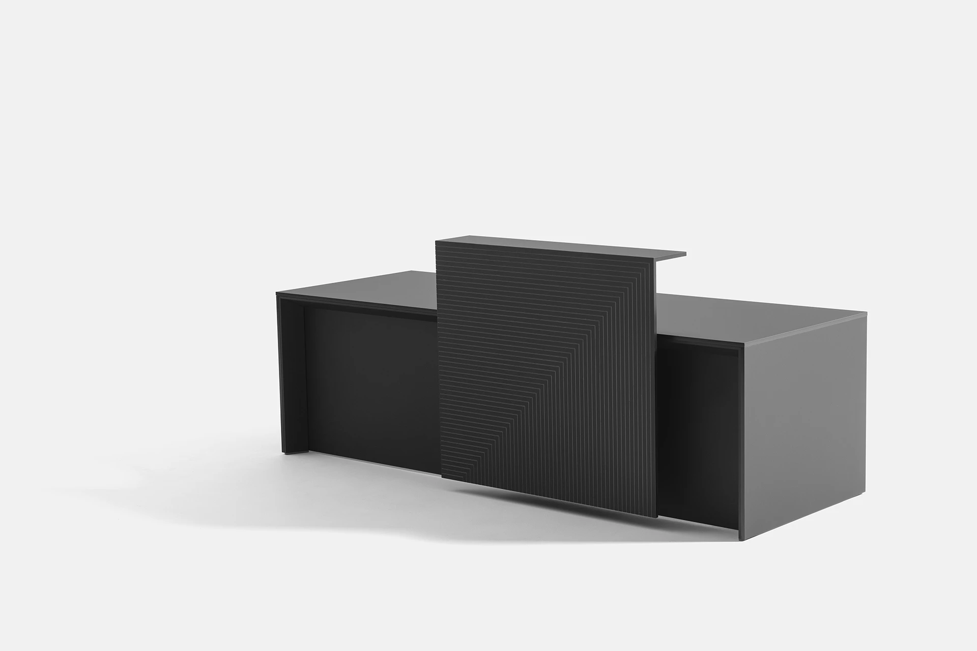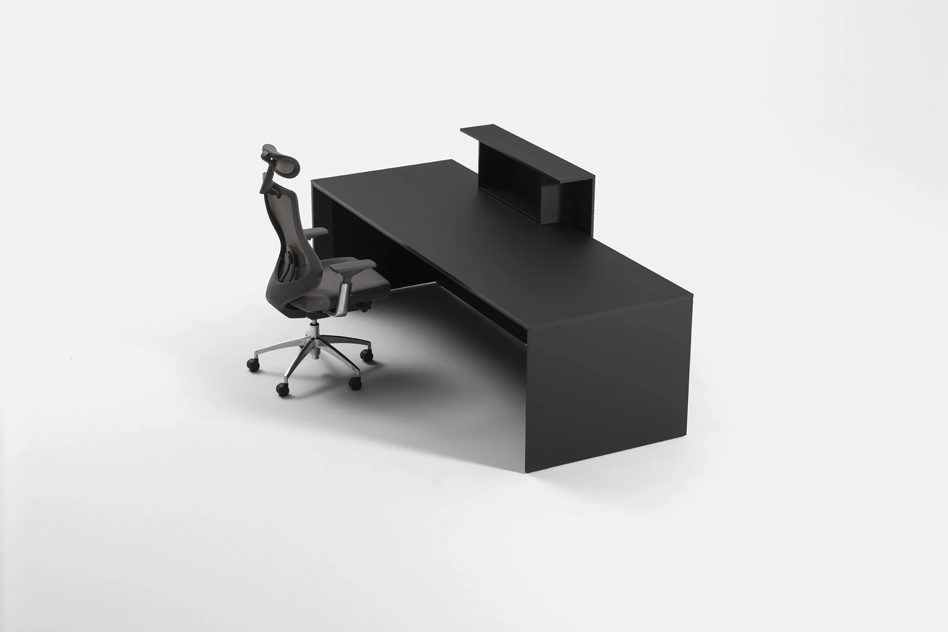 The desk’s top and body are made from 16mm thick laminated MDF, with the laminate design chosen by the client. The edges are finished with 1 or 2mm thick PVC strips. All cutting, edging, and machining of the panels are done using advanced, fully automated machinery to ensure the highest quality of the final product.