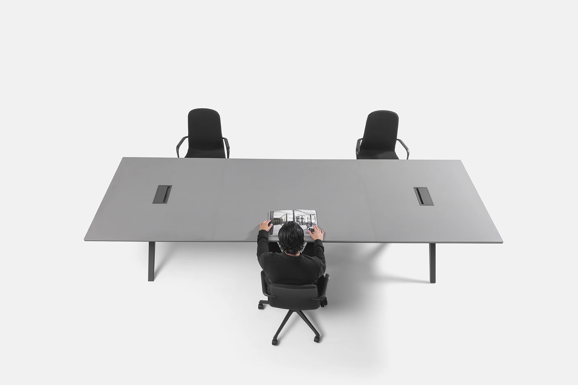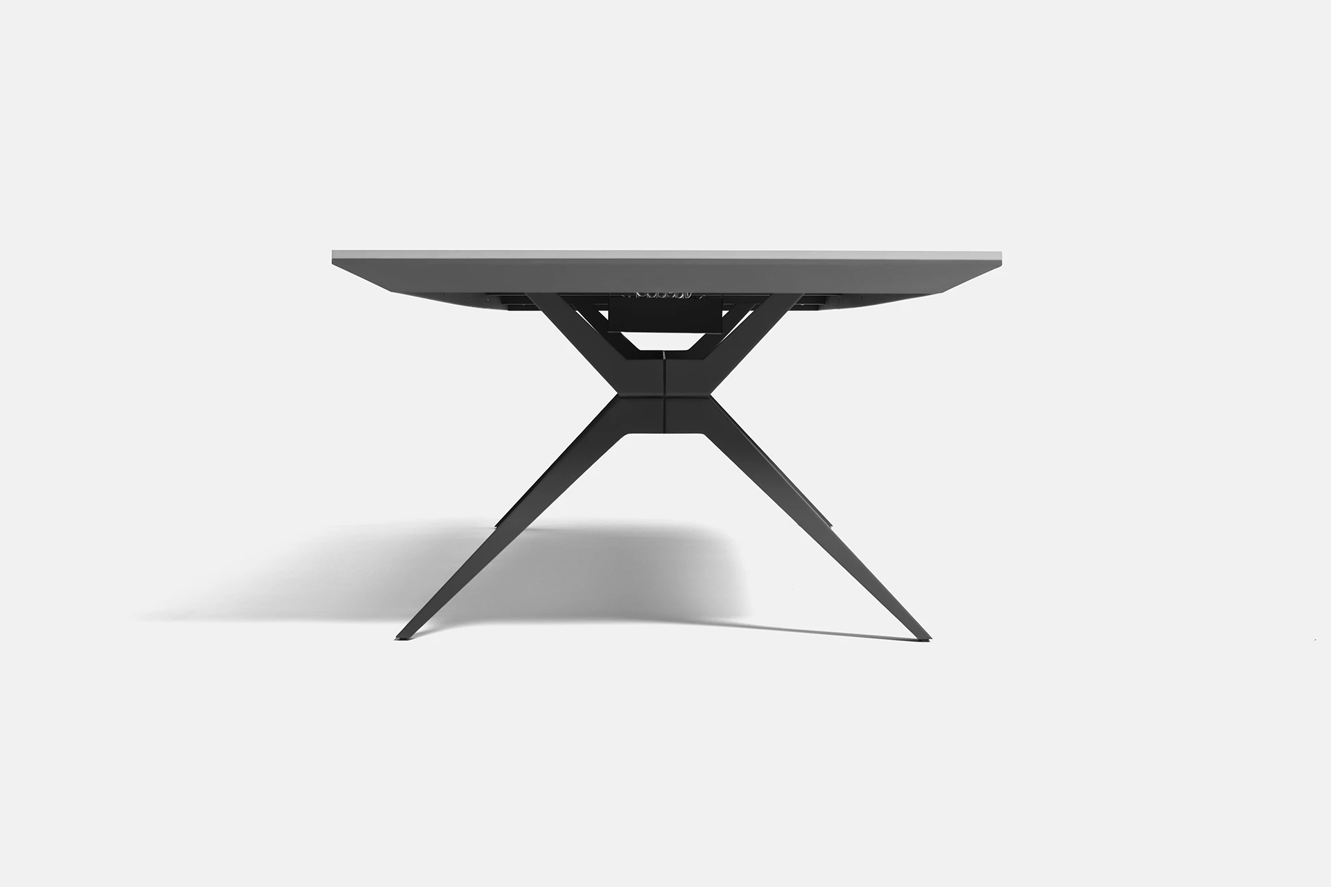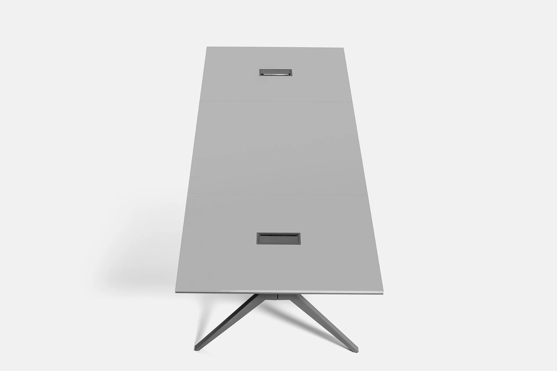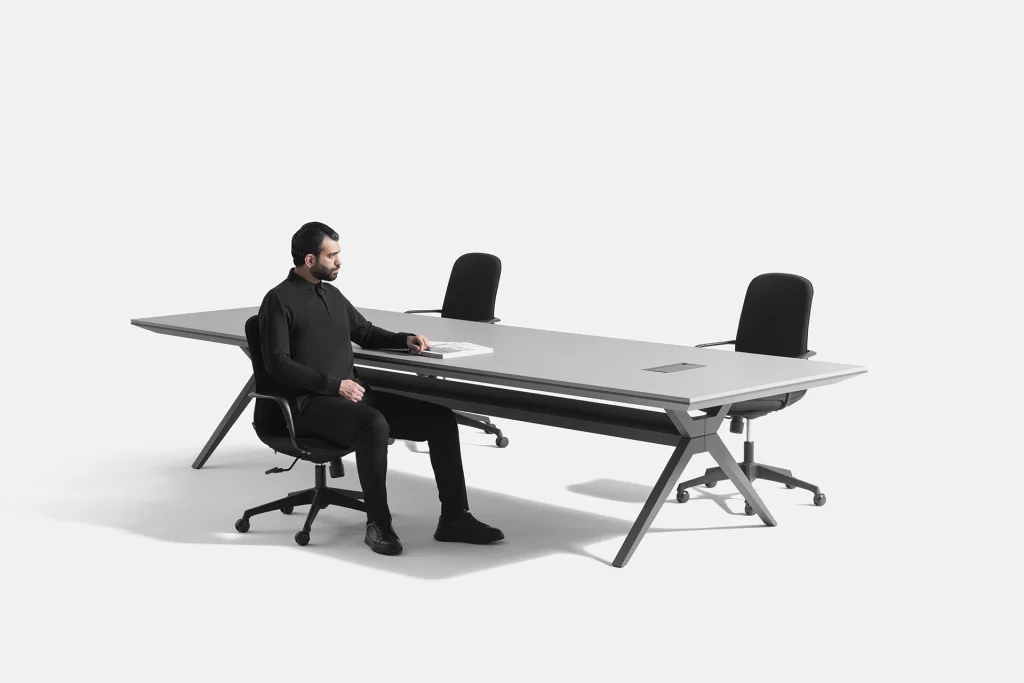 This conference table features a full-aluminum structure with two X-shaped legs designed with engineering precision. The sharp and unique angles of the legs provide exceptional strength and stability to the table. The distinctive and exclusive design of the legs adds a modern and appealing touch to the conference space.