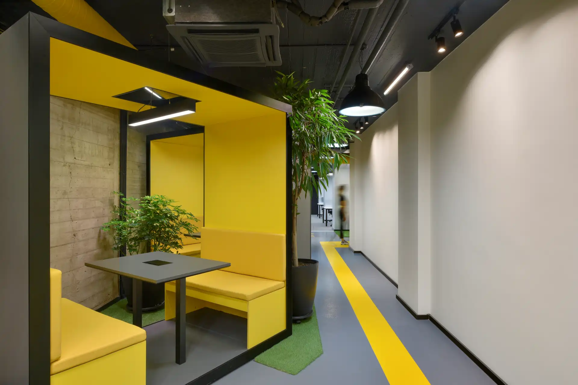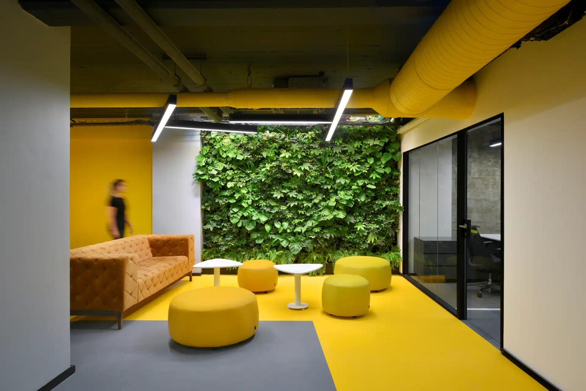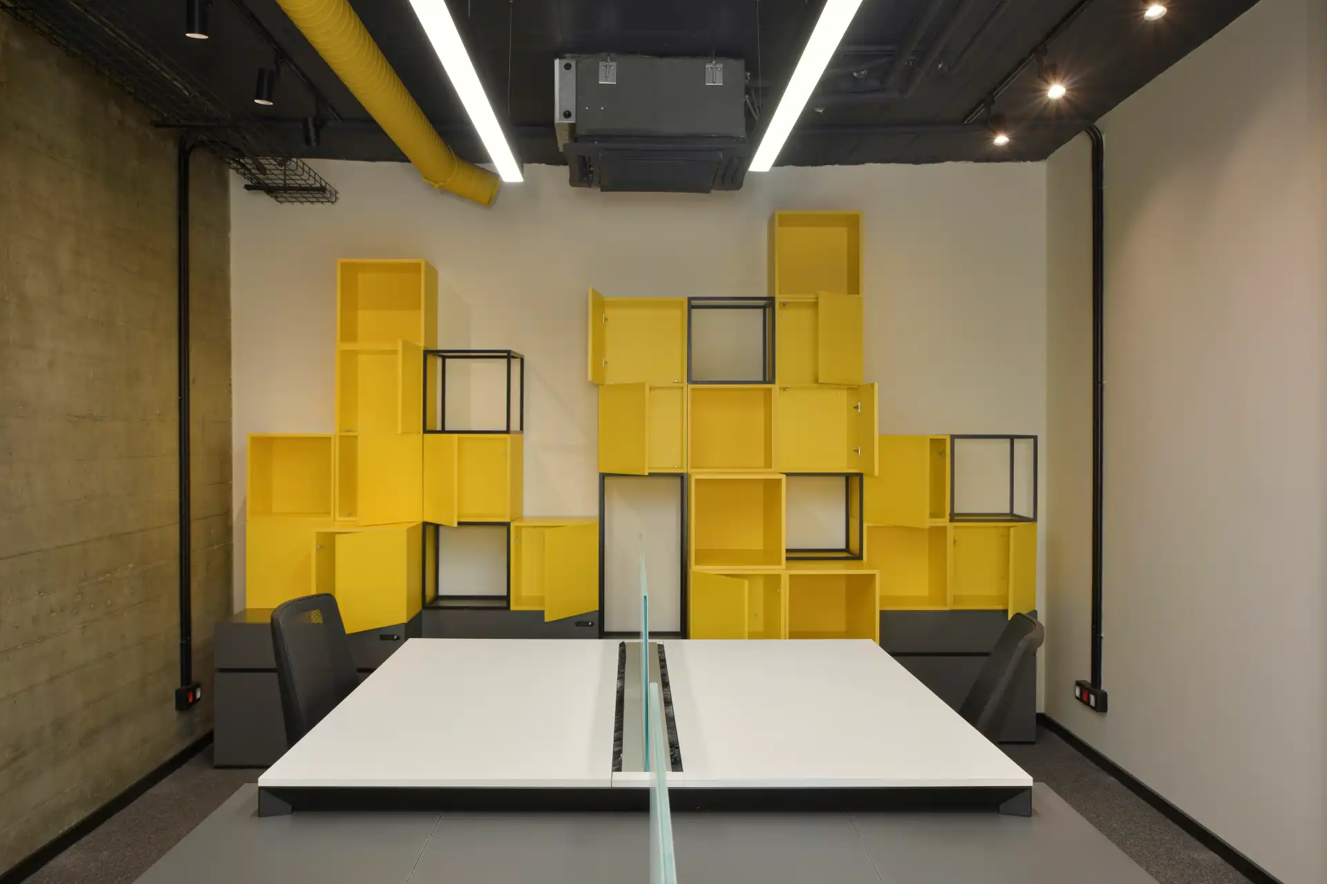 A wonderful project, full of excitement with an exceptional combination of yellow and green colors that attracts every observer at the moment of arrival. A modern space with attractive materials and efficient furniture, which led us practice a different experience with the architectural group and our respected client. Take the charms of this different project into account.