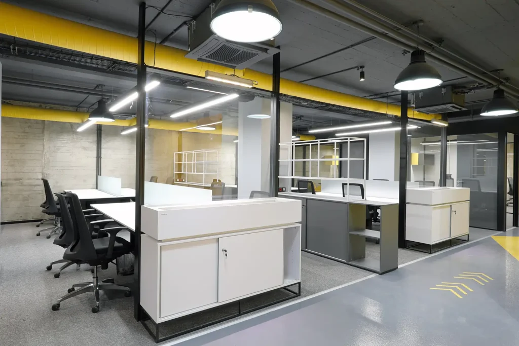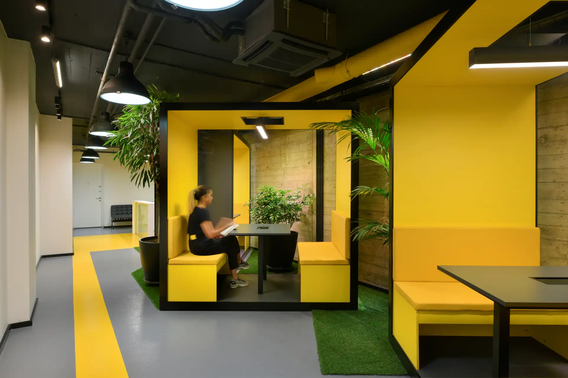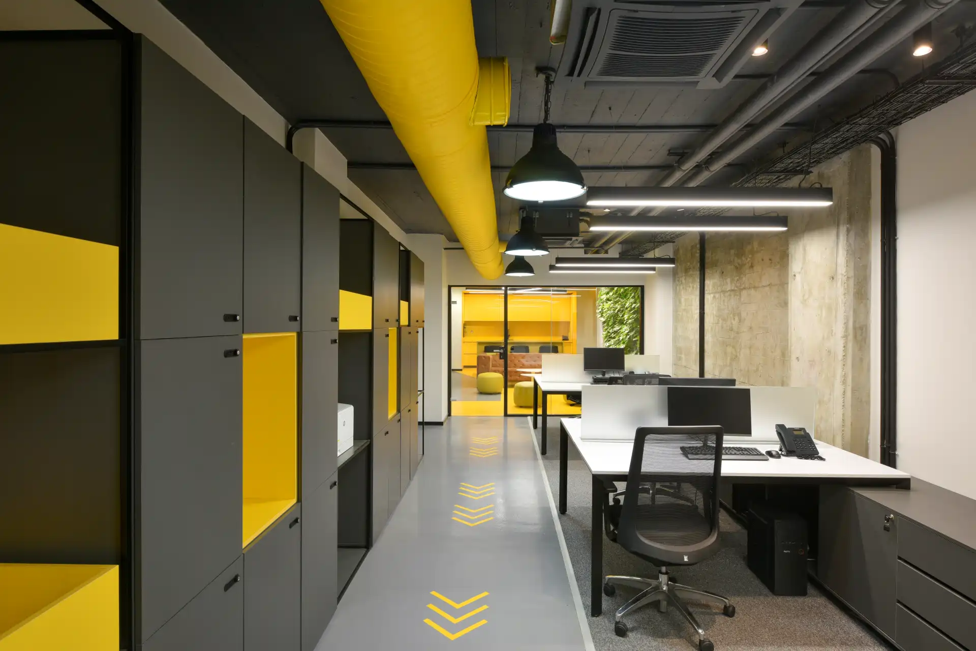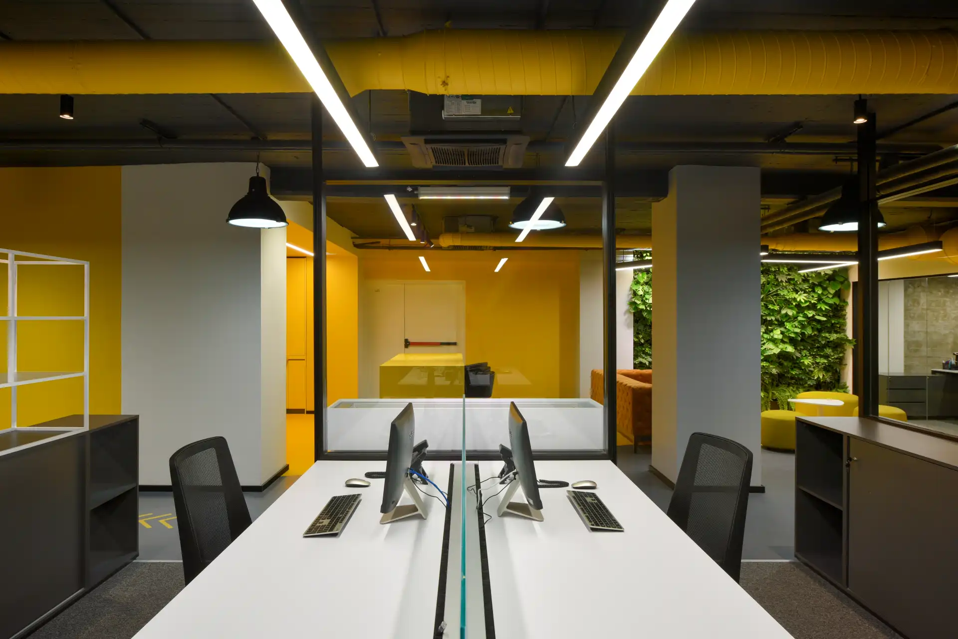 A wonderful project, full of excitement with an exceptional combination of yellow and green colors that attracts every observer at the moment of arrival. A modern space with attractive materials and efficient furniture, which led us practice a different experience with the architectural group and our respected client. Take the charms of this different project into account.